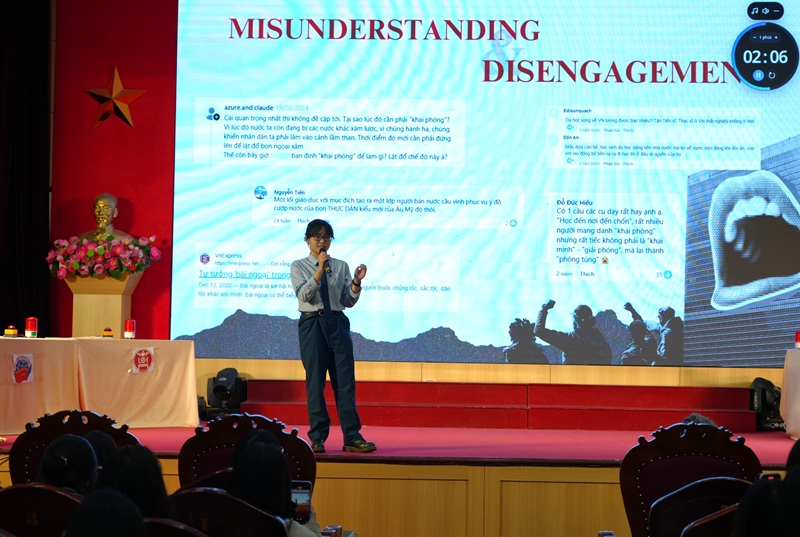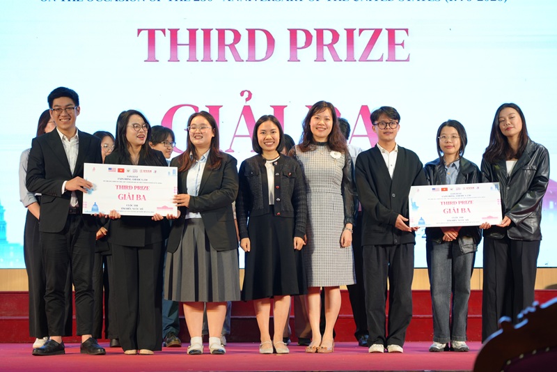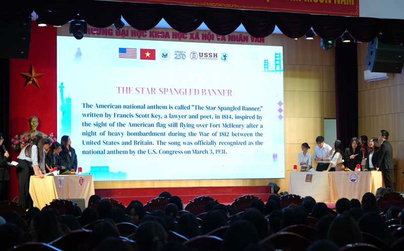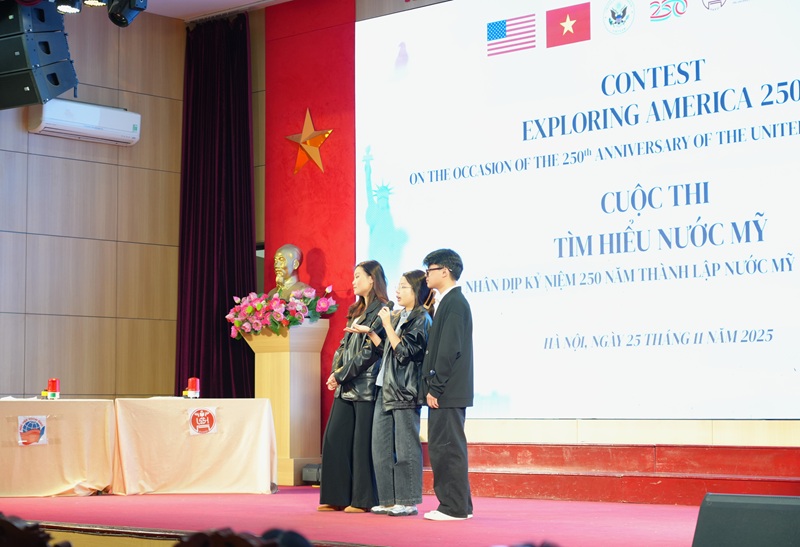 开幕式结束后,名为“探索美国 250”的学生竞赛立即吸引了来自四所大学的学生的关注:越南社会科学与人文大学、越南河内国家大学(USSH)、河内大学(HANU)、越南外交学院(DAV)、新闻与传播学院(AJC)。