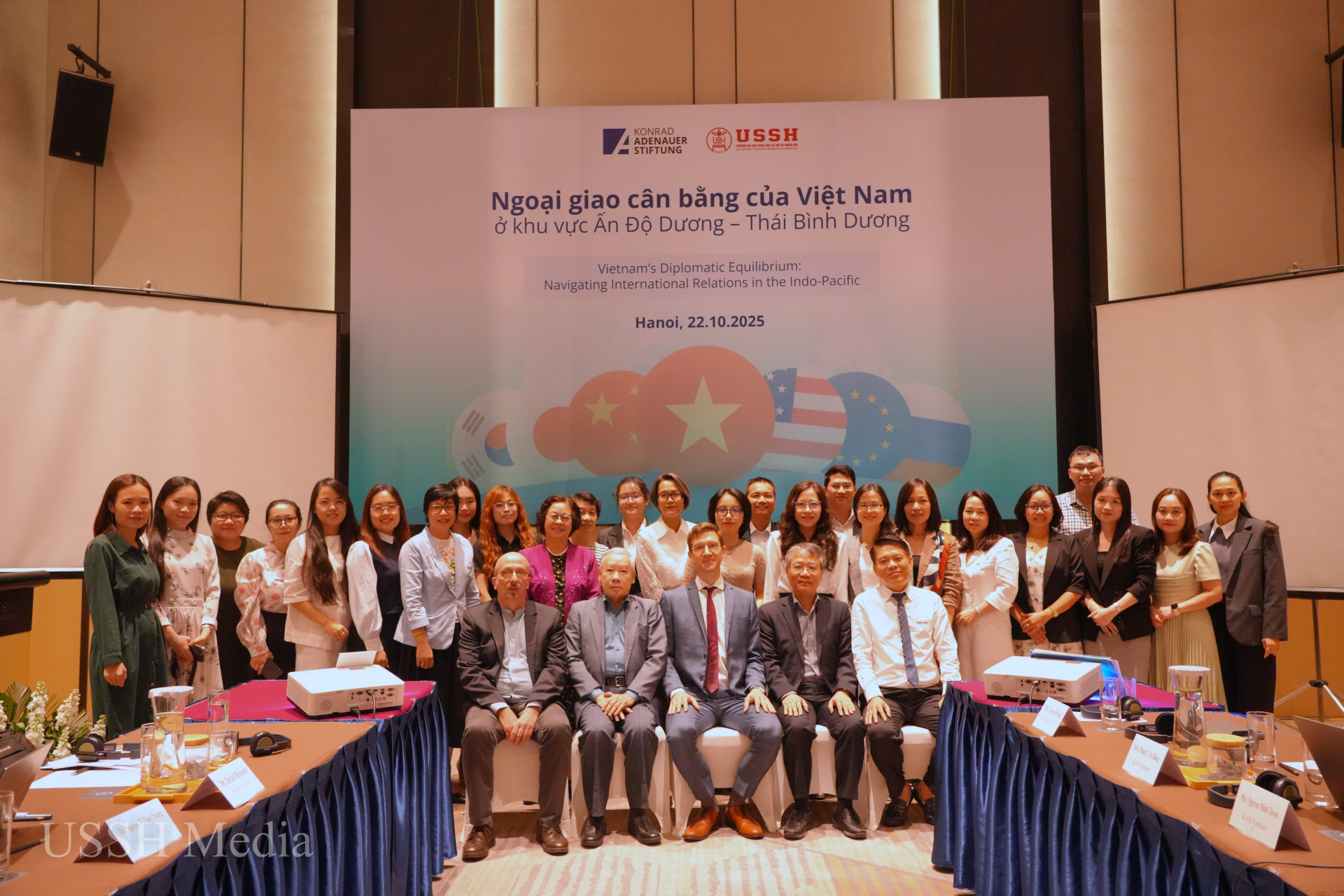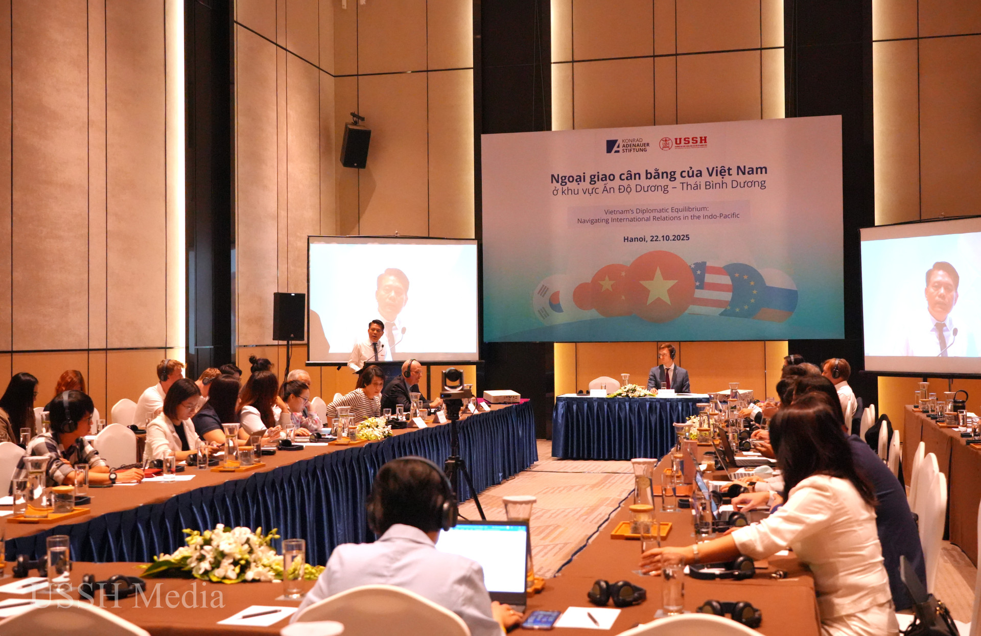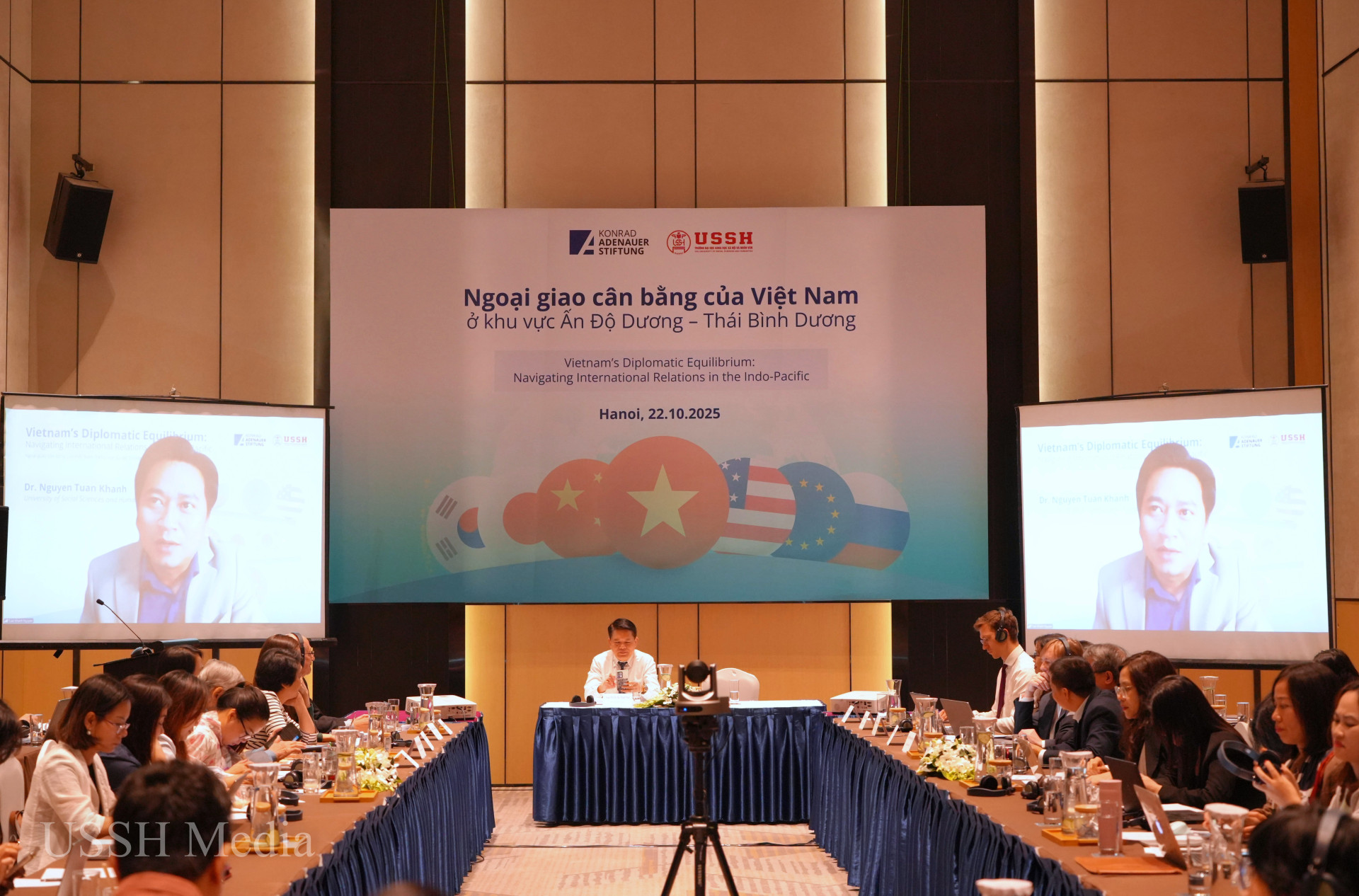 Discuss current issues of concern regarding Vietnam's balanced diplomacy“Vietnam's Balanced Diplomacy in the Indo-Pacific Region” is a research project conducted by the University of Social Sciences and Humanities, with the support of the Konrad-Adenauer-Stifung (Germany). The project will be fully implemented in 2025 - a pivotal year with many fundamental changes, aiming at Vietnam's breakthrough development in the following years. The international conference with the theme "Vietnam's Balanced Diplomacy in the Indo-Pacific Region" was held with the direct and online participation of more than 100 scientists and managers from prestigious domestic and international organizations, research institutes and universities to share and discuss important research results of the project.
