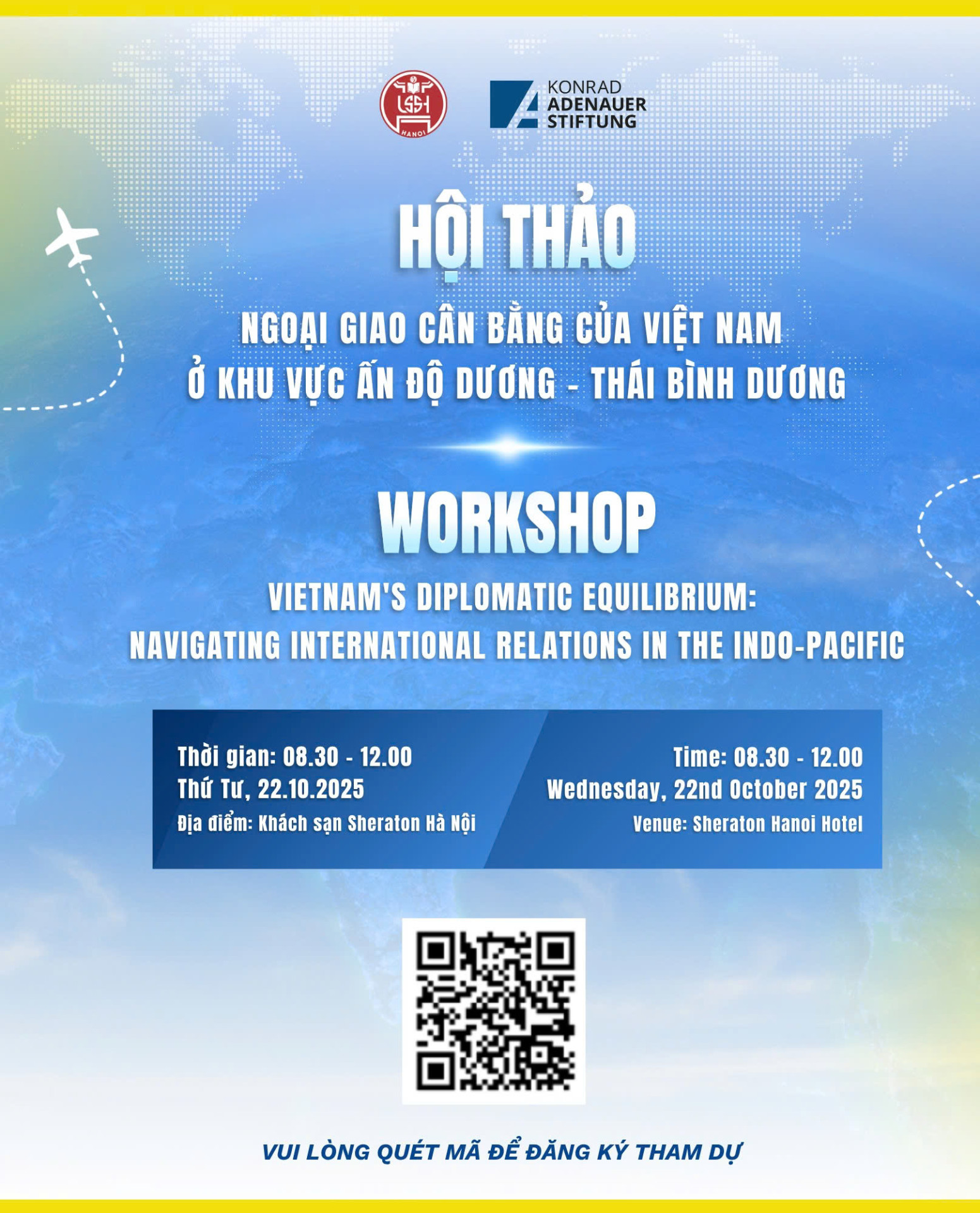 이러한 문제는 베트남 사회과학인문대학(VNU)과 콘라트 아데나워 재단이 공동으로 시행하는 공동 프로젝트의 틀 내에서 "인도-태평양 지역에서의 베트남의 균형 잡힌 외교"에 관한 워크숍에서 논의될 것입니다.