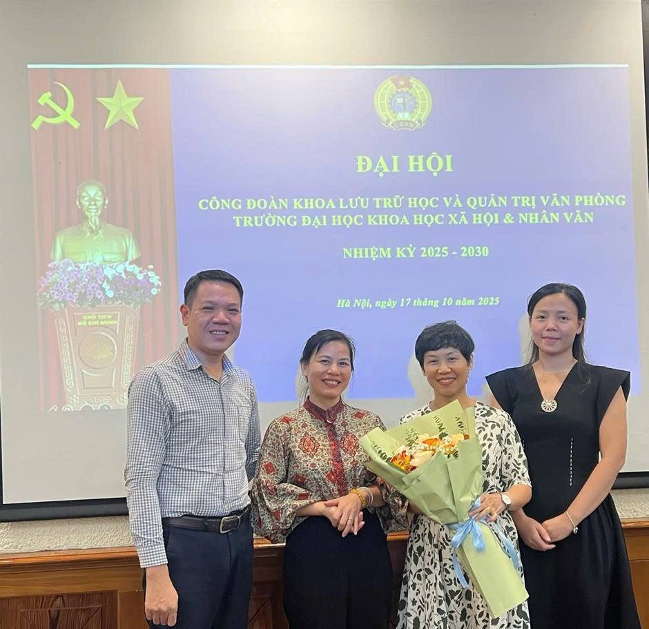 Đại hội Công đoàn Khoa Lưu trữ học và Quản trị văn phòng nhiệm kỳ 2025-2030 đã diễn ra thành công tốt đẹp, thể hiện tinh thần dân chủ, đoàn kết và đổi mới. Đại hội không chỉ là dịp tổng kết một chặng đường, mà còn là bước khởi đầu mới cho hành trình xây dựng tổ chức công đoàn vững mạnh, đồng hành cùng sự phát triển của Khoa và của Trường Đại học Khoa học Xã hội và Nhân văn trong thời kỳ chuyển đổi số và hội nhập.
