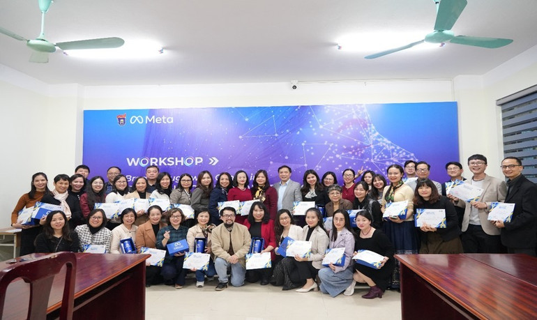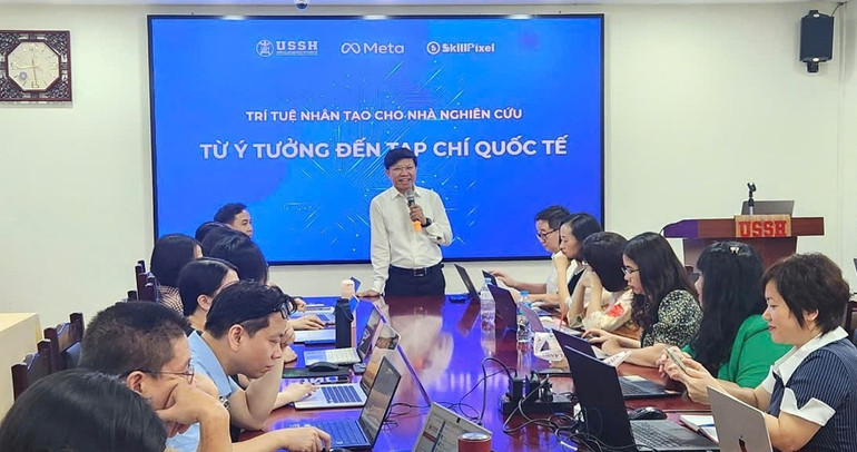 Trường ĐHKHXH&NV phối hợp với Tập đoàn Meta tổ chức thành công khoá tập huấn về AI cho hơn 180 giảng viên và 80 cán bộ, chuyên viên của nhà trường. Ảnh: USSH Media
