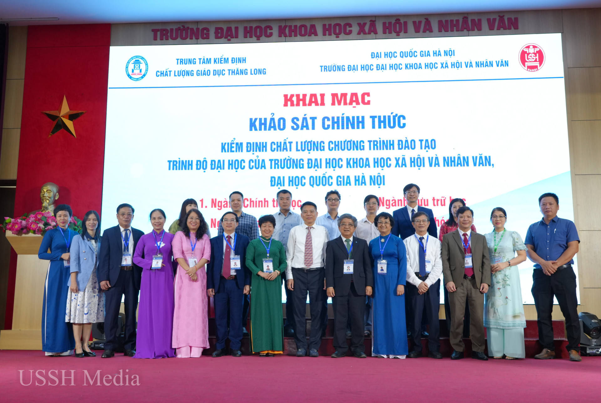 Tham dự Lễ Khai mạc, về phía Trường Đại học Khoa học Xã hội và Nhân văn có PGS.TS Bùi Thành Nam – Bí thư chi bộ, Chủ tịch Hội đồng Trường, PGS.TS. Đặng Hồng Sơn – Phó Hiệu trưởng, cùng Hội đồng tự đánh giá 04 CTĐT, lãnh đạo các đơn vị chức năng, lãnh đạo các Khoa có CTĐT được kiểm định và cán bộ đầu mối các mảng công tác của Nhà trường.