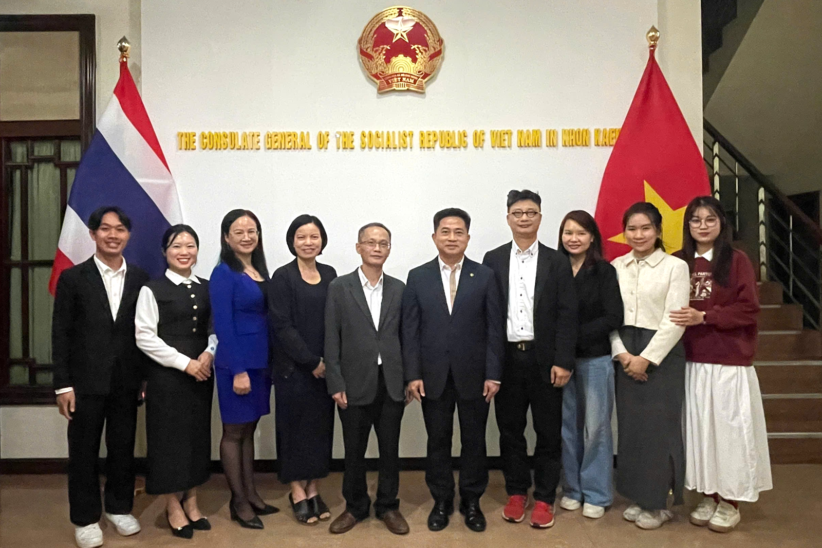 Hai Khoa cũng đã tới báo cáo kết quả công việc và trình bày tư vấn công tác bảo tồn, lan toả và phát huy các giá trị ngôn ngữ, văn hoá, đất nước học, Việt Nam học đến Tổng Lãnh sự quán Việt Nam tại Khon Kaen, Thái Lan.