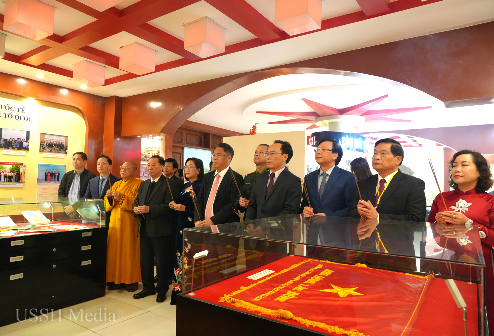 Trong khuôn khổ Hội thảo, các đại biểu đã tham dự lễ dâng hương đài tưởng niệm Bác Hồ tại Phòng Truyền thống của Trường ĐH KHXH&NV