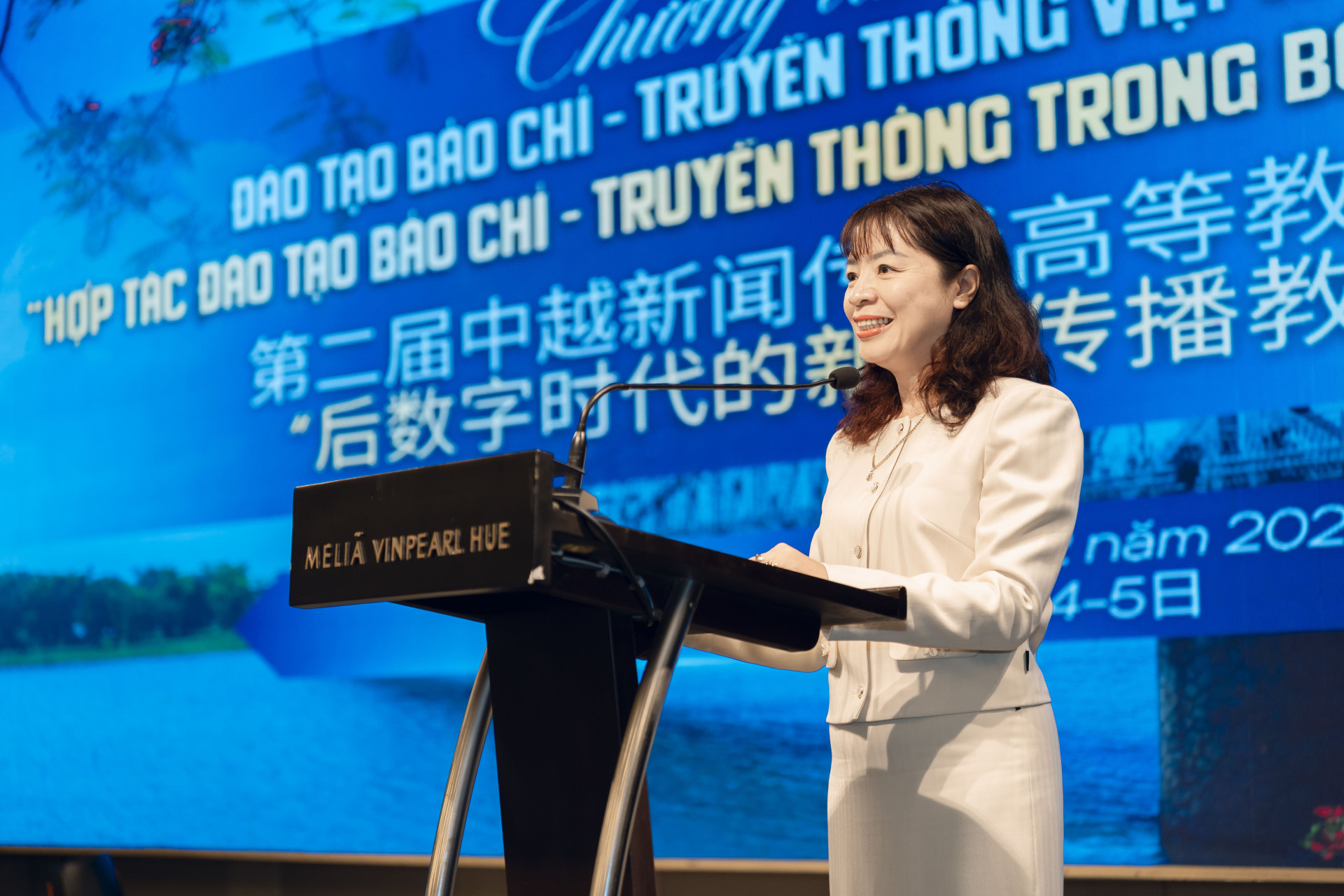 Trong phiên khai mạc, Phó Hiệu trưởng Trường Đại học KHXH&NV, ĐHQGHN PGS.TS. Trần Thị Thu Hương nhấn mạnh tầm quan trọng của việc củng cố hợp tác học thuật giữa các trường đại học báo chí - truyền thông trong khu vực. Phó Hiệu trưởng khẳng định: “Trong bối cảnh truyền thông toàn cầu vận hành trên nền tảng số hóa sâu rộng, sự hợp tác giữa các cơ sở đào tạo không chỉ nhằm chia sẻ tri thức mà còn góp phần hình thành năng lực ứng biến của nguồn nhân lực báo chí – truyền thông trước những thách thức mới. Nhà trường cam kết đồng hành cùng các đối tác Việt Nam và Trung Quốc trong việc kiến tạo những chương trình đào tạo tiên tiến, thúc đẩy trao đổi khoa học và xây dựng mạng lưới các nhà nghiên cứu trẻ năng động.”