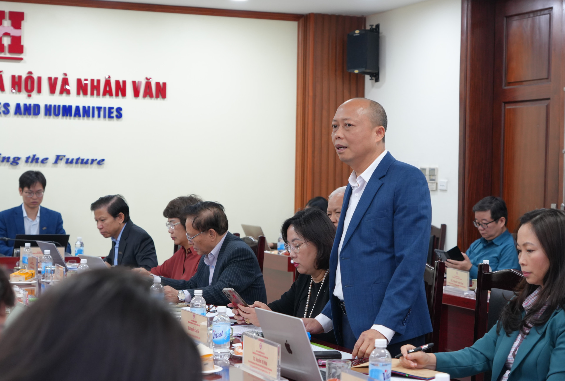 Phát biểu khai mạc tọa đàm, GS.TS Hoàng Anh Tuấn – Hiệu trưởng Trường Đại học Khoa học Xã hội và Nhân văn nhấn mạnh vai trò của nhà trường với tư cách là cơ sở nghiên cứu và đào tạo hàng đầu về khoa học xã hội và nhân văn trong việc đóng góp trí tuệ khoa học cho quá trình hoạch định và thực thi chính sách phát triển văn hóa của đất nước. Theo GS Hoàng Anh Tuấn, việc tổ chức tọa đàm không chỉ nhằm làm rõ các nội dung cốt lõi của Nghị quyết 80-NQ/TW mà còn góp phần thống nhất nhận thức và hành động trong giới nghiên cứu, đồng thời thúc đẩy sự gắn kết giữa nghiên cứu học thuật và thực tiễn quản lý, phát triển văn hóa.