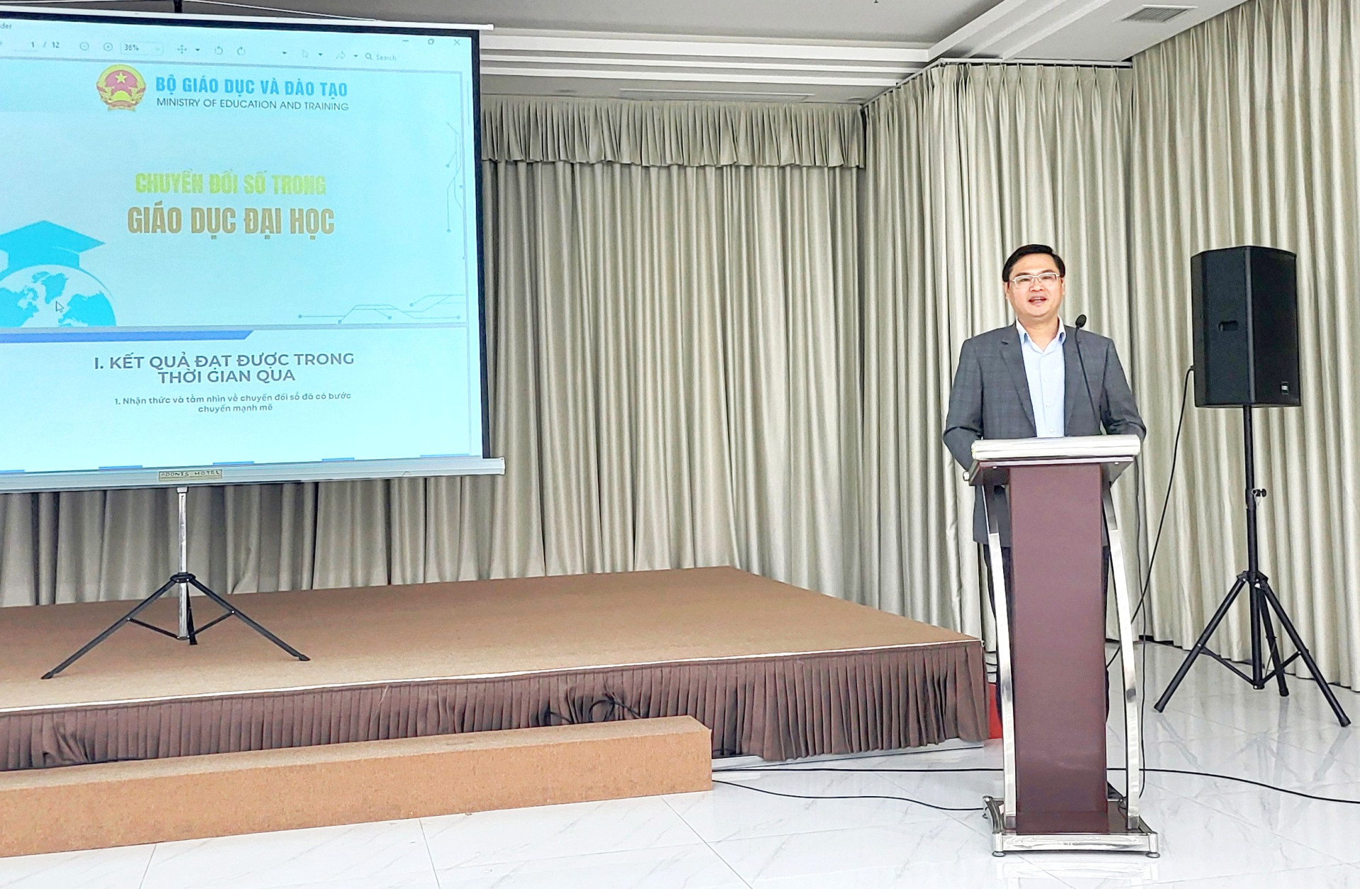 Ông Đặng Văn Huấn - Phó Vụ trưởng Vụ Giáo dục Đại học, Bộ GĐ&ĐT chia sẻ tại Hội nghị