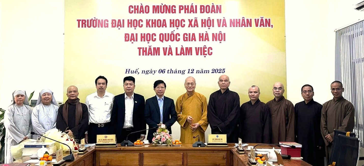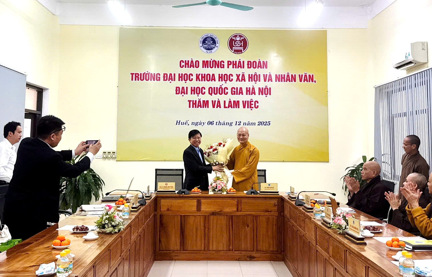 Học viện PGVN tại Huế đón tiếp Phái đoàn Trường Đại học Khoa học Xã hội và Nhân văn – Đại học Quốc gia Hà Nội thăm và làm việc