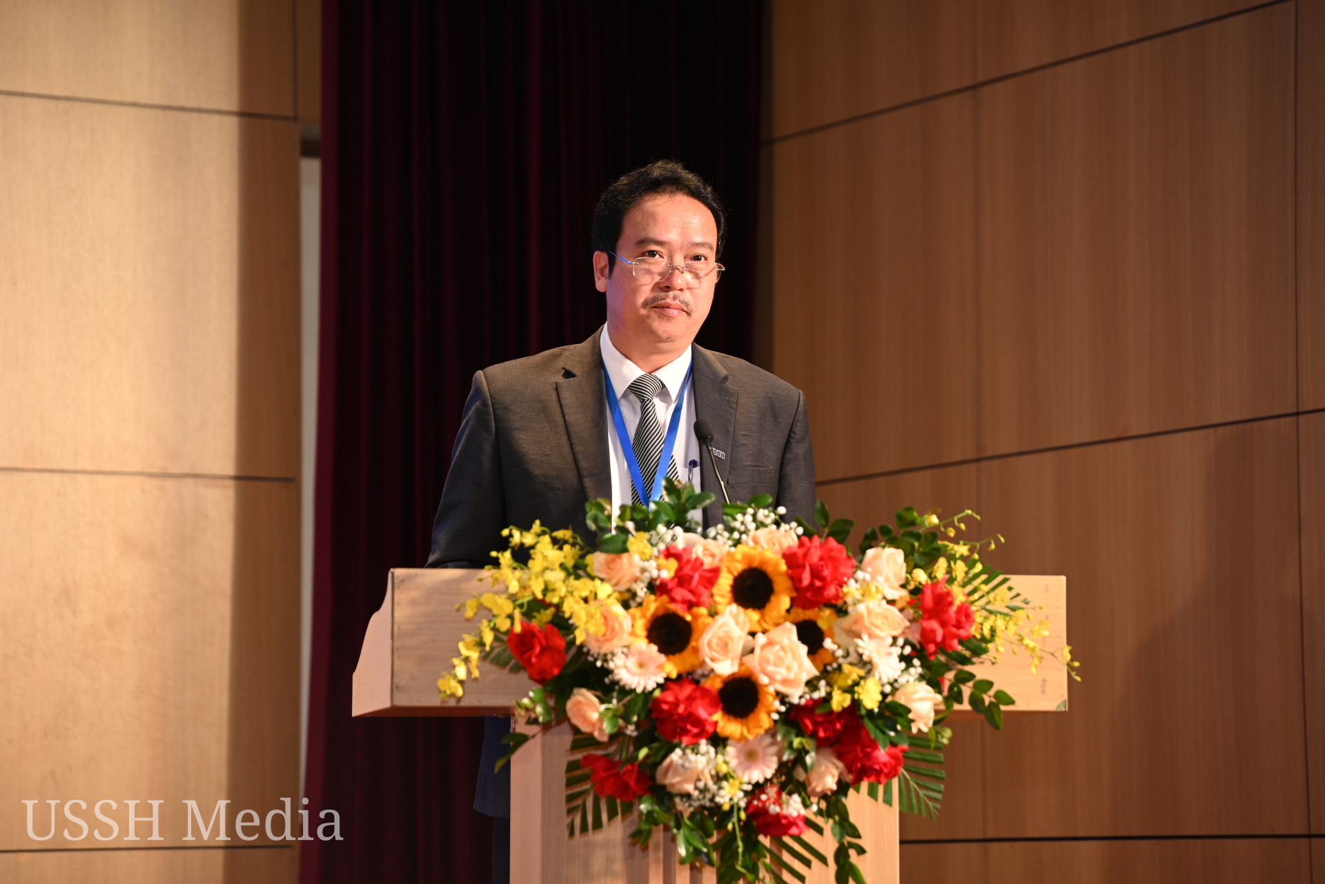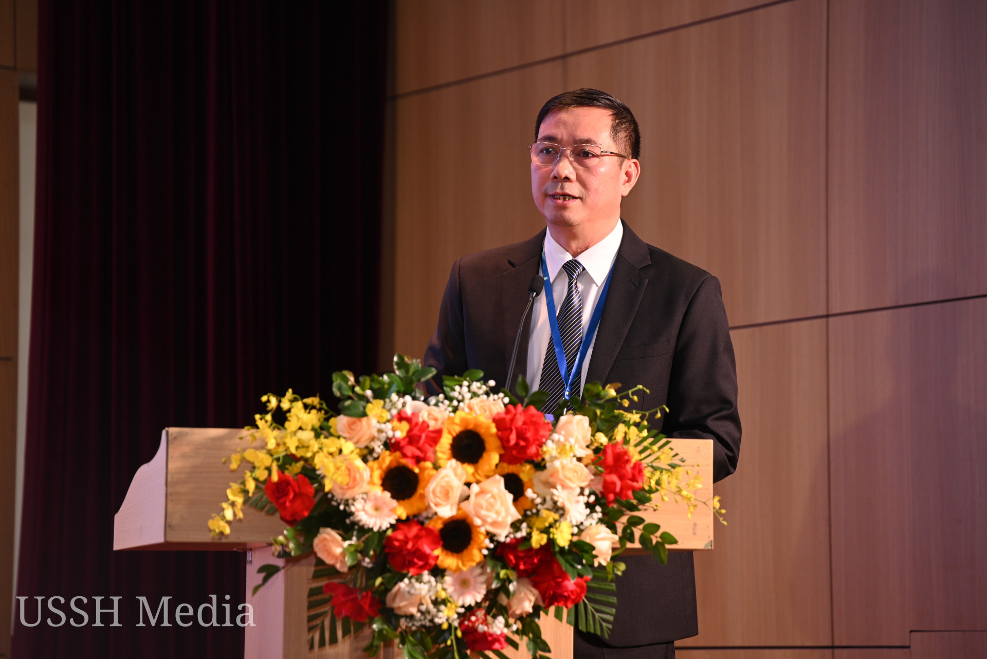 PGS.TS Bùi Thành Nam - Bí thư Đảng ủy, Chủ tịch Hội đồng Trường Đại học Khoa học Xã hội và Nhân văn phát biểu chỉ đạo Đại hội