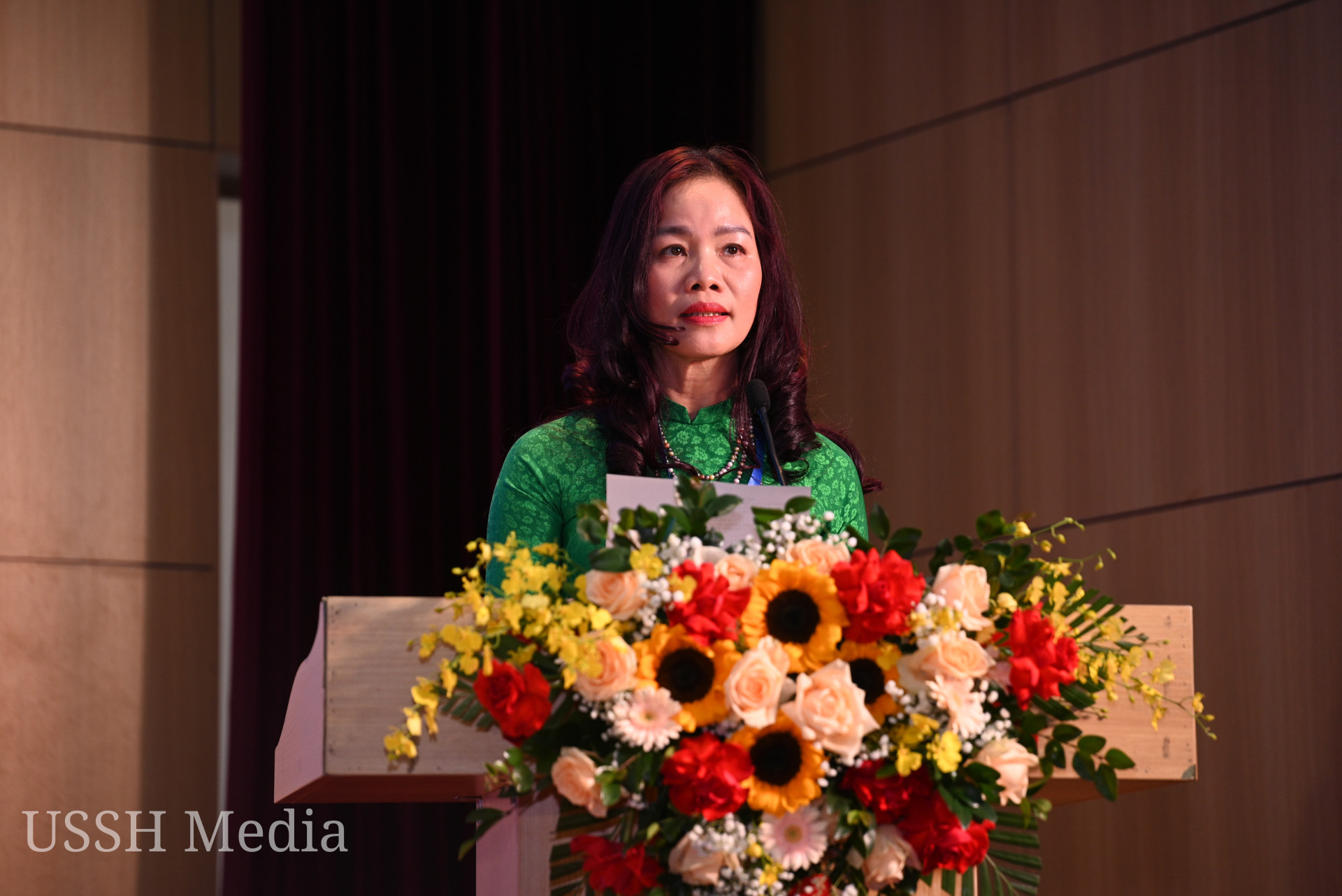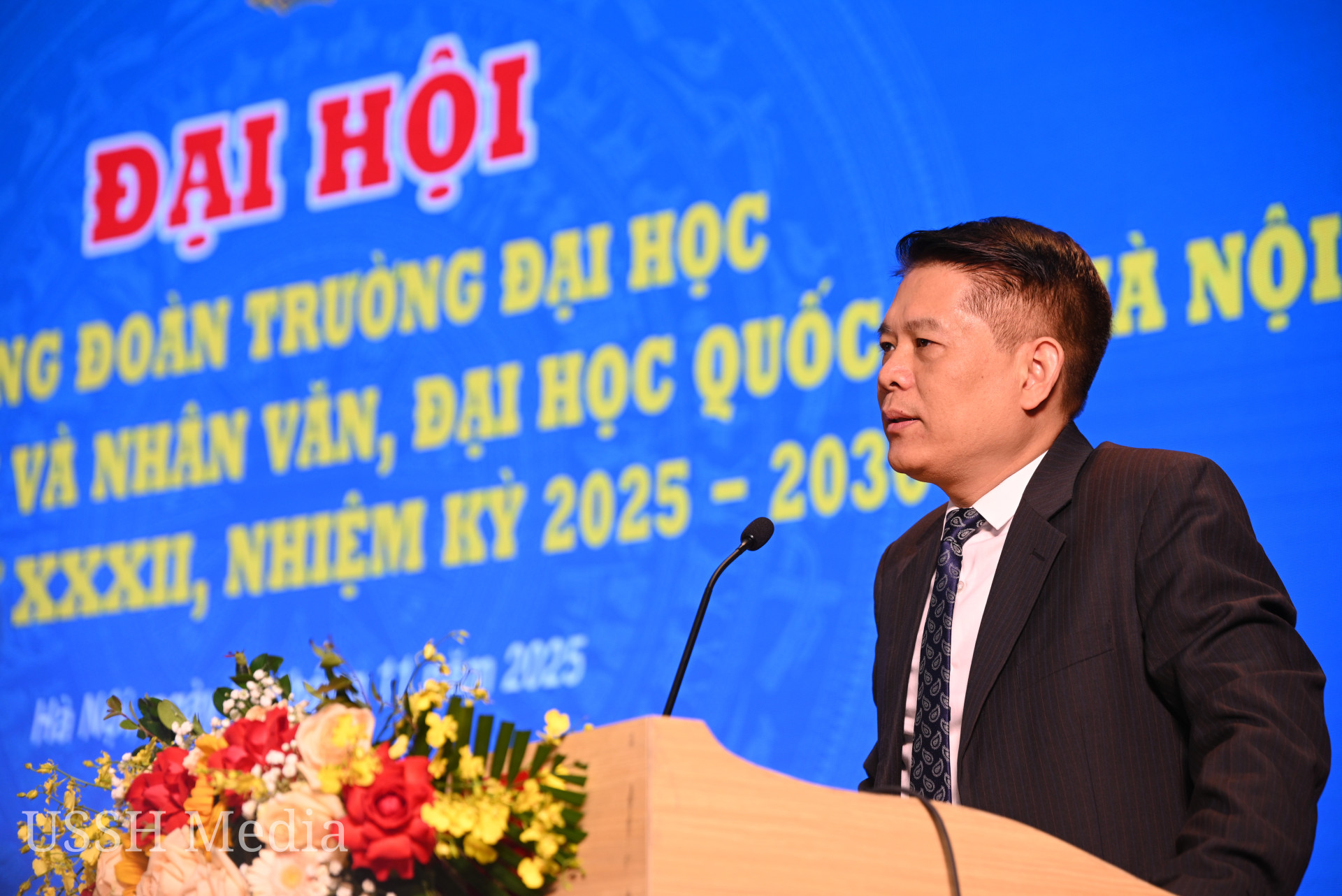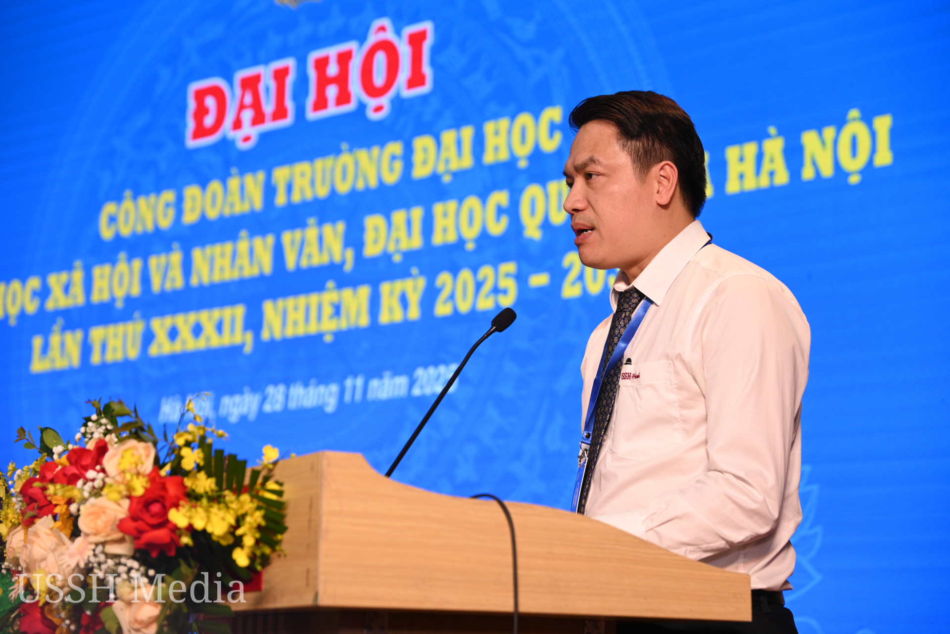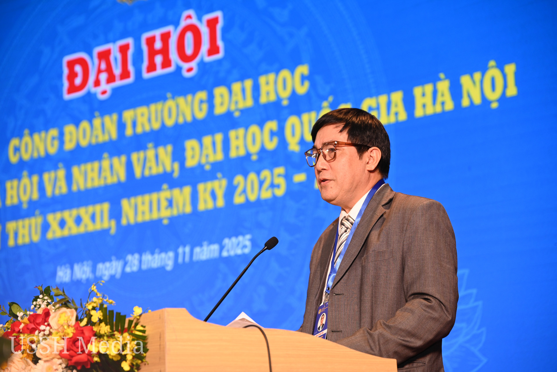 Phát biểu tại Đại hội, đồng chí Nguyễn Thị Thảo - Chủ tịch Công đoàn Đại học Quốc gia Hà Nội ghi nhận và đánh giá cao sự nỗ lực của Công đoàn Trường trong nhiệm kỳ vừa qua. Đồng chí nhấn mạnh, Công đoàn Trường đã khẳng định được năng lực mạnh mẽ ở những lĩnh vực tưởng chừng không phải thế mạnh của Trường Đại học Khoa học Xã hội và Nhân văn, đặc biệt là công nghệ, chuyển đổi số và ứng dụng AI trong hoạt động công đoàn và chuyên môn. Đây là minh chứng rõ ràng cho tinh thần đổi mới, sự năng động, sáng tạo và chuyên nghiệp của đội ngũ cán bộ công đoàn và viên chức Nhà trường. Các hoạt động của công đoàn Nhà trường luôn được tổ chức với quy mô, sự chuyên nghiệp, bài bản, đậm nét nhân văn.