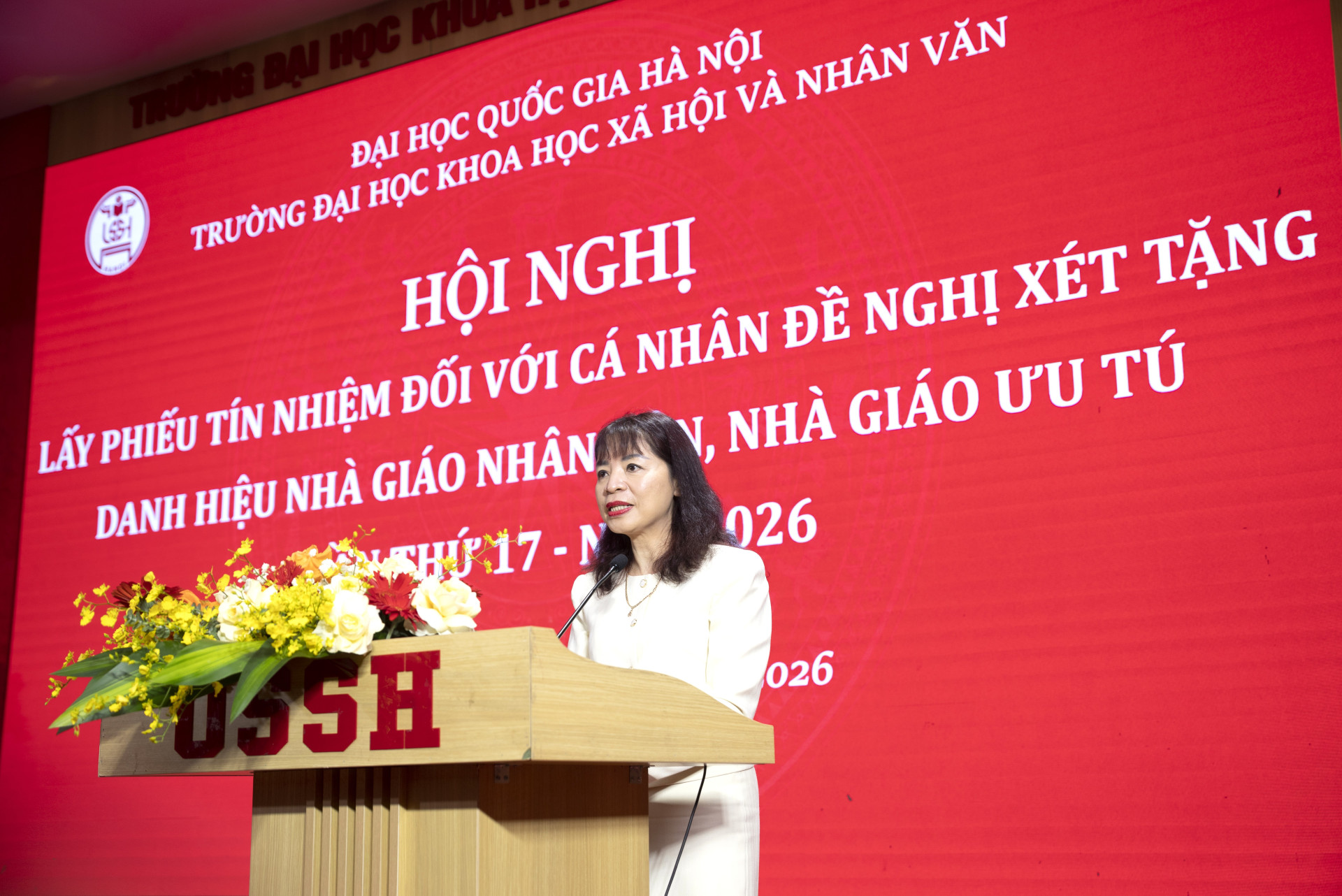 Hội nghị lấy phiếu tín nhiệm không chỉ là một bước trong quy trình xét tặng danh hiệu, mà còn là dịp để tập thể cán bộ, viên chức Nhà trường cùng nhìn lại và tôn vinh những cống hiến bền bỉ, tận tụy của các nhà giáo tiêu biểu. Thông qua hoạt động này, Trường Đại học Khoa học Xã hội và Nhân văn tiếp tục khẳng định sự quan tâm đối với công tác phát triển đội ngũ, lan tỏa giá trị tri ân, tôn vinh nghề dạy học, đồng thời góp phần xây dựng môi trường giáo dục nhân văn, chuẩn mực và giàu động lực phấn đấu. Đây cũng là nguồn cổ vũ để đội ngũ nhà giáo tiếp tục phát huy truyền thống, kiên định uy tín học thuật, nâng cao chất lượng đào tạo, đóng góp thiết thực cho sự nghiệp giáo dục nước nhà.