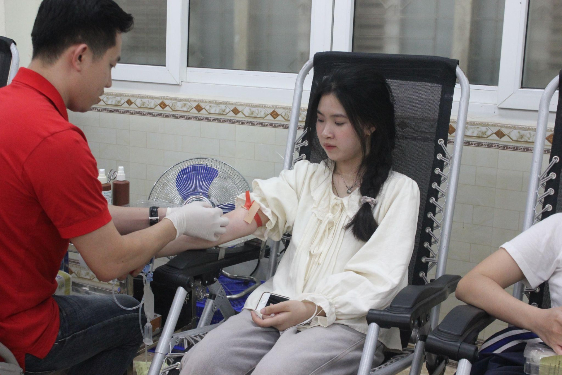 Từ rất sớm, nhiều bạn sinh viên đã có mặt để đăng ký tham gia hiến máu. Chia sẻ về hoạt động ý nghĩa và nhân văn này, bạn Nguyễn Diệu Kiều Trâm tâm sự: “Ban đầu mình cũng hơi lo, nhưng khi thấy các bạn Tình nguyện viên xung quanh đều rất nhiệt tình và tích cực, mình cảm thấy yên tâm hơn. Đây là lần đầu tiên mình hiến máu và mình thật sự hạnh phúc vì có thể làm được một điều nhỏ bé nhưng có ích. Mình nghĩ nếu điều kiện sức khoẻ mình ổn định, mình vẫn sẽ tiếp tục tham gia trong những lần sau”.