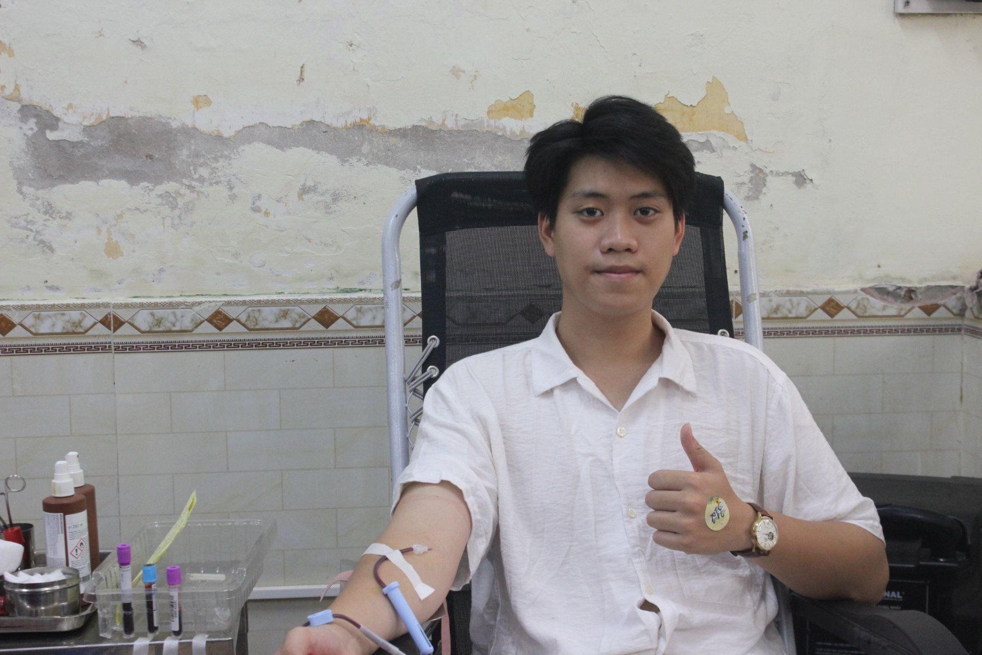 Bạn Nguyễn Quang Minh vừa là tình nguyện viên vận động, tổ chức hiến máu, vừa trực tiếp tham gia hiến máu