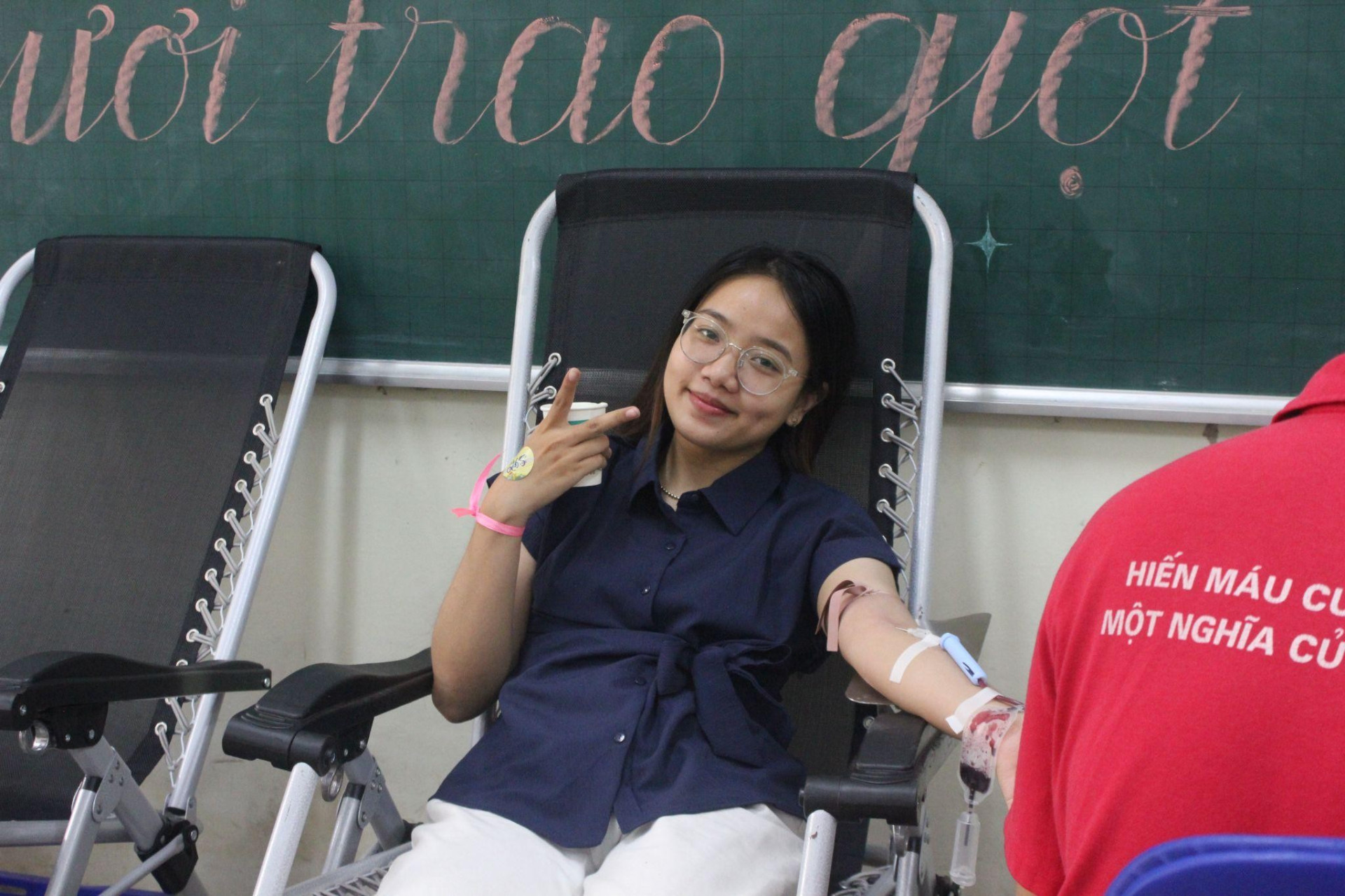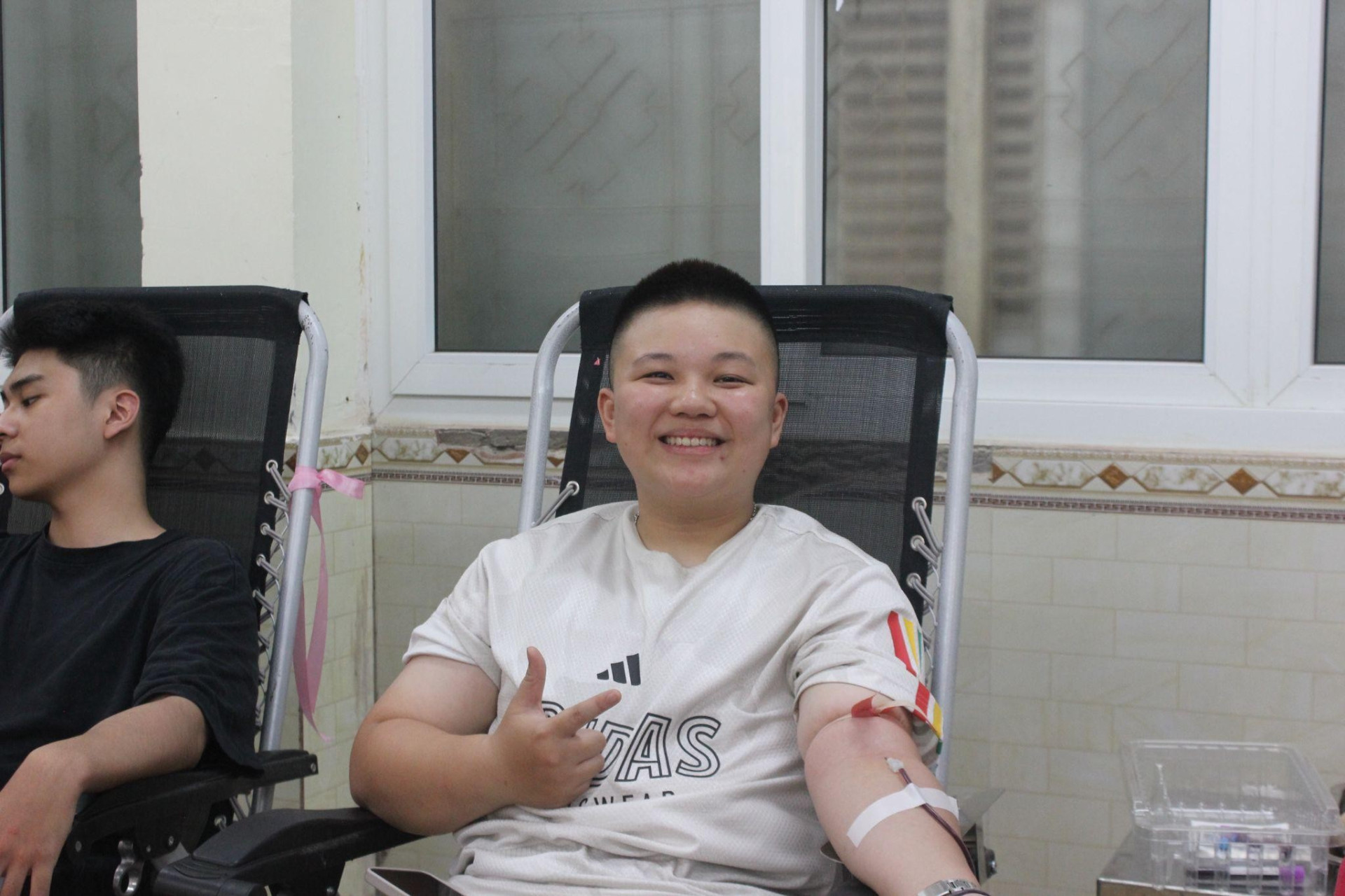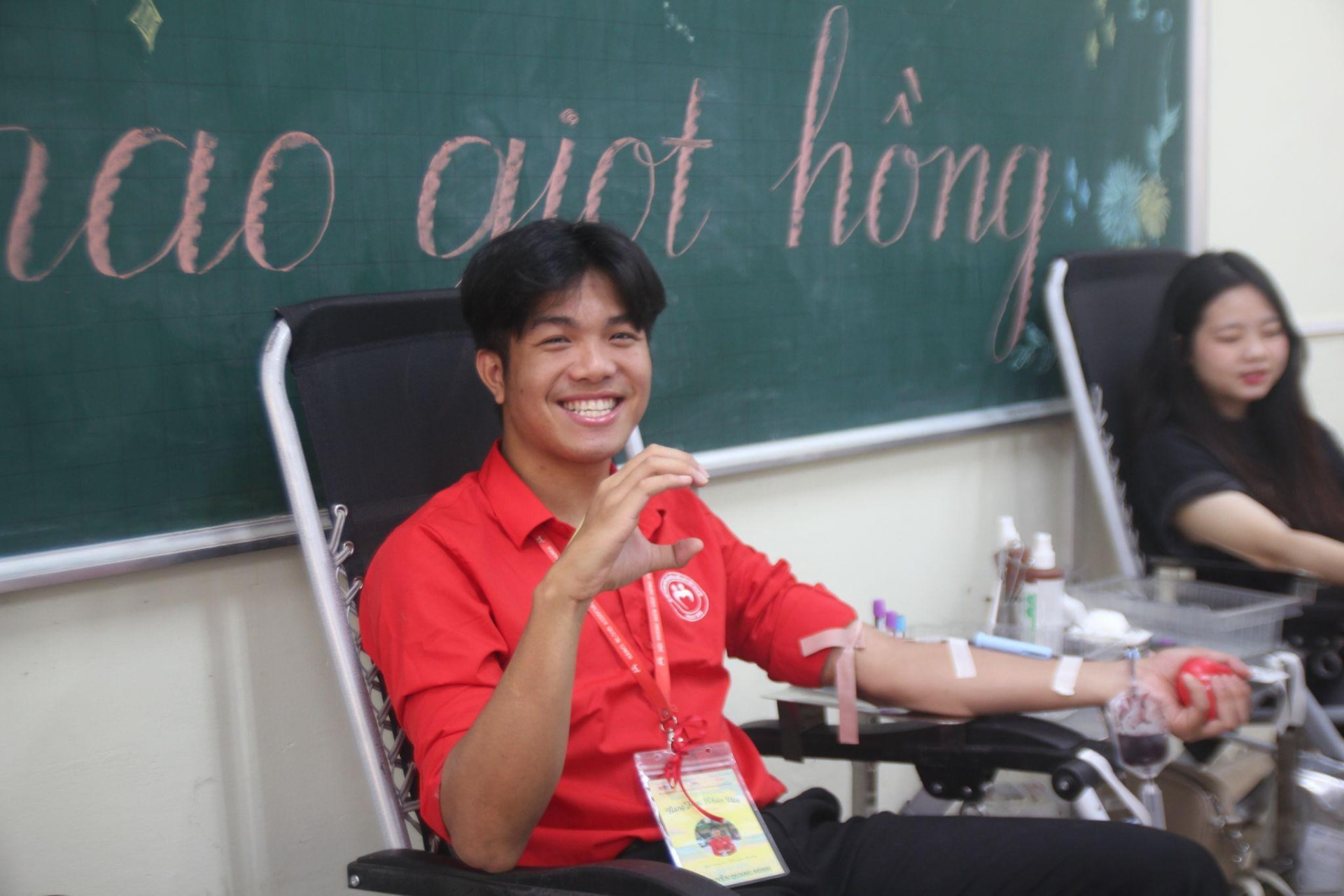 “Nụ cười rạng rỡ của các bạn sinh viên khi tham gia hiến máu”