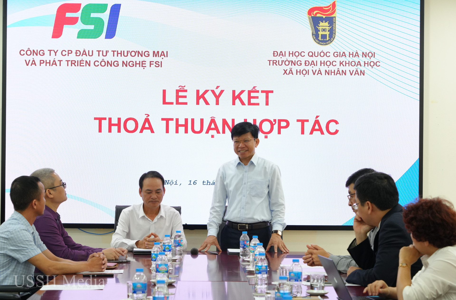 GS.TS Hoàng Anh Tuấn – Hiệu trưởng Trường Đại học Khoa học Xã hội và Nhân văn, ĐHQGHN bày tỏ sự cảm kích trước những cam kết mạnh mẽ của FSI trong việc đồng hành của VNU-USSH ở nhiều hoạt động đào tạo, nghiên cứu