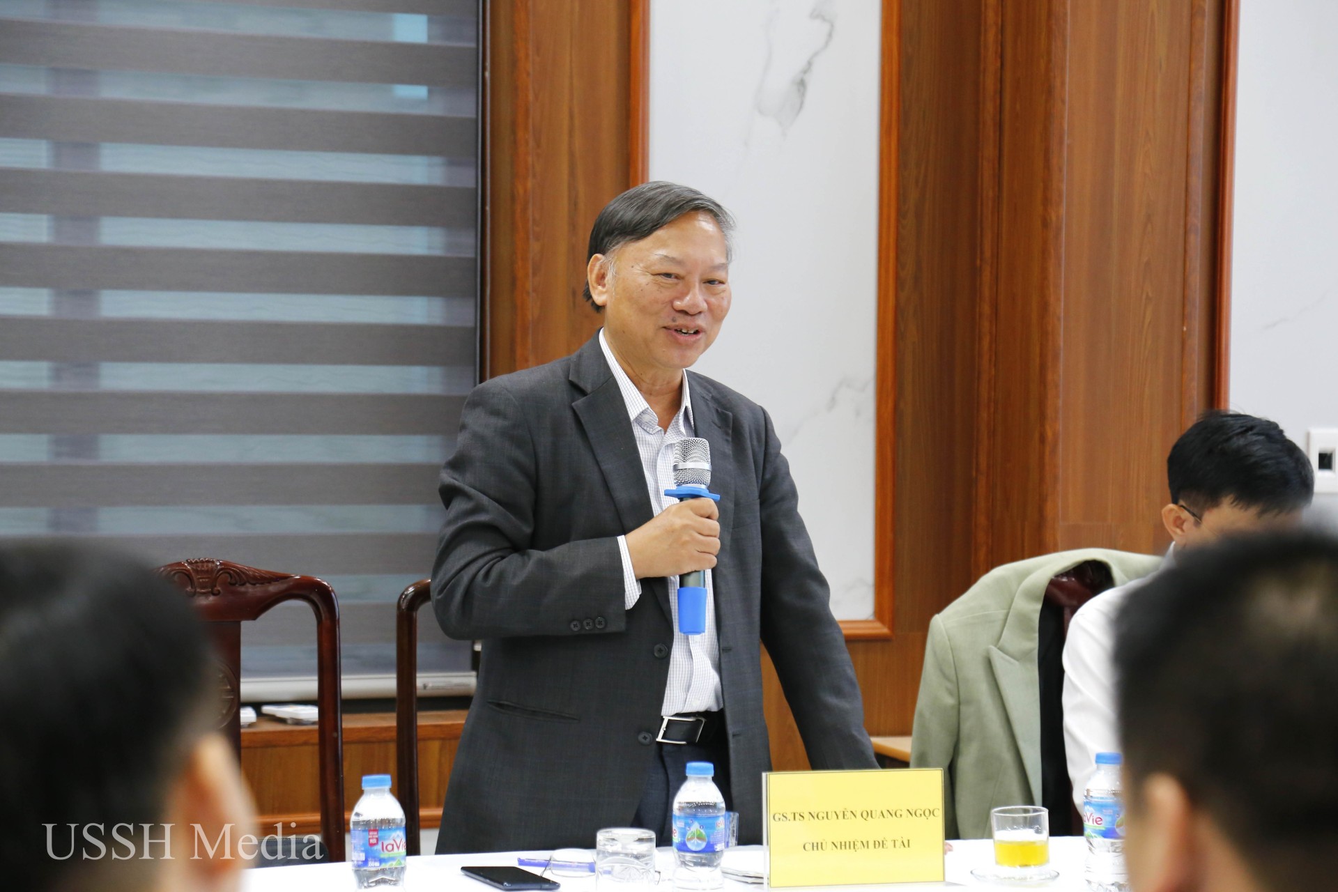 GS.TS. Nguyễn Quang Ngọc tại buổi làm việc về Biên soạn Địa chí Nam Định