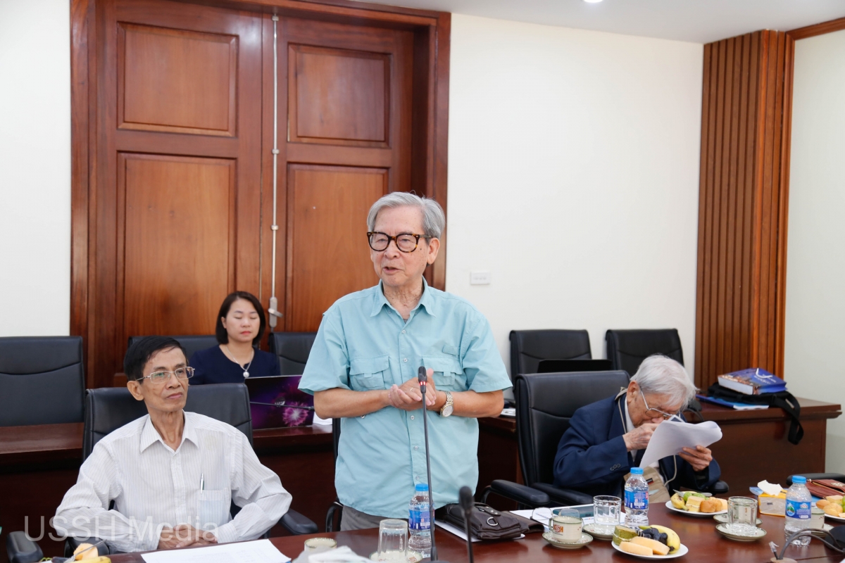 GS.TS.NGND Đinh Văn Đức - Chủ tịch Hội Cựu giáo chức Đại học Quốc gia Hà Nội trao đổi tại một buổi tọa đàm của Trường Đại học Khoa học Xã hội và Nhân văn năm 2024