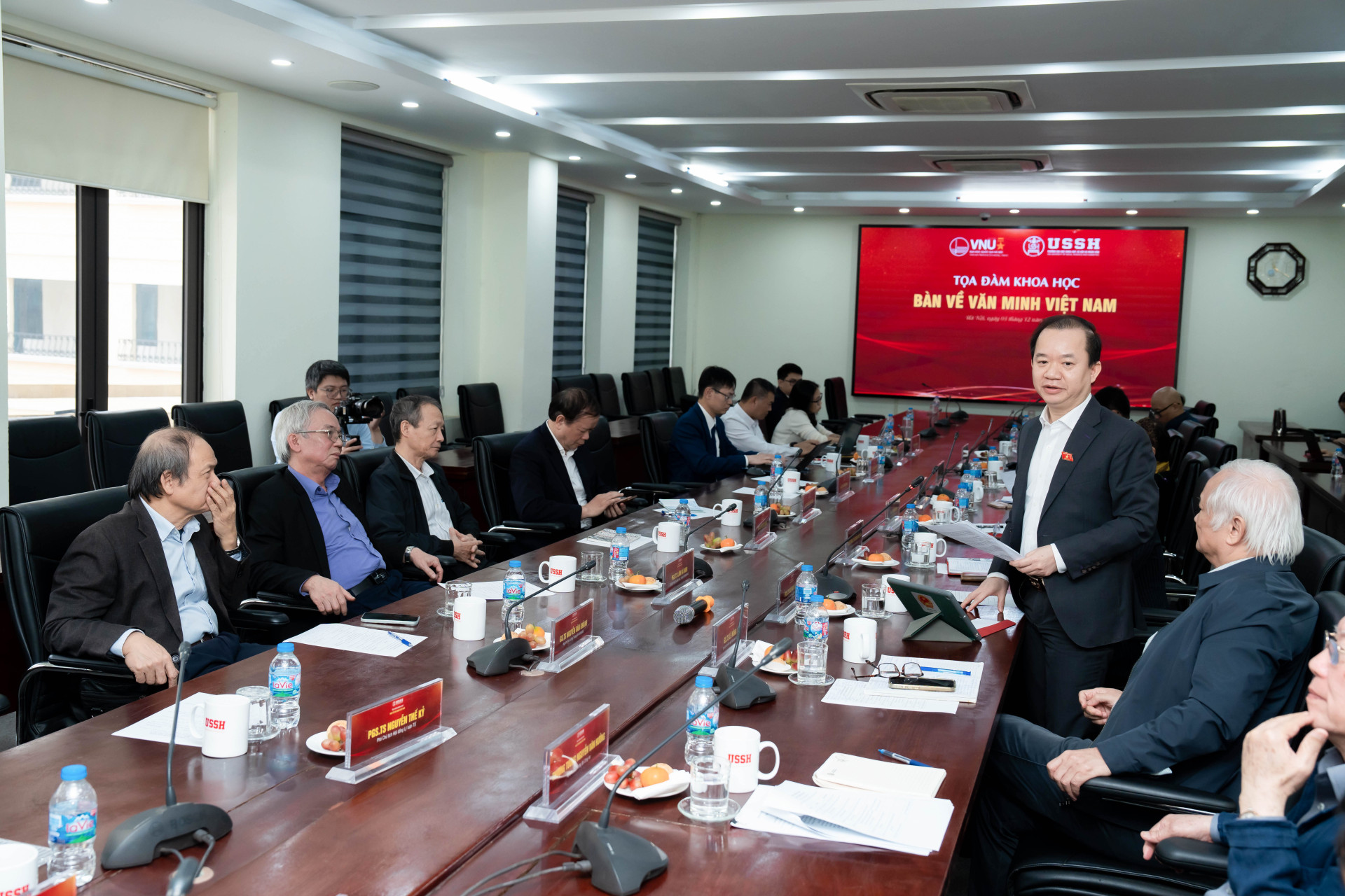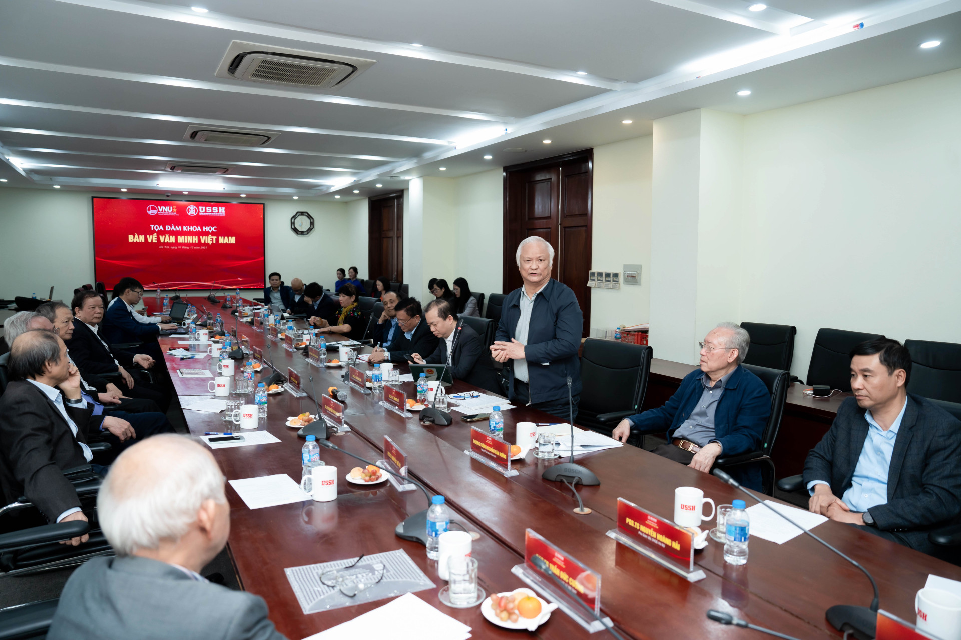 Từ những câu hỏi đó, ngày 03/12/2025, Trường Đại học Khoa học Xã hội và Nhân văn tổ chức Tọa đàm khoa học với chủ đề “Bàn về văn minh Việt Nam”. Tọa đàm quy tụ các nhà khoa học, các chuyên gia hàng đầu trong nhiều lĩnh vực (sử học, khảo cổ học, văn hóa học, lý luận chính trị...) để cùng thảo luận, làm sâu sắc thêm các vấn đề lý luận và thực tiễn, nhằm thực hiện sứ mệnh của khoa học xã hội và nhân văn trong việc đồng hành cùng sự phát triển của đất nước.