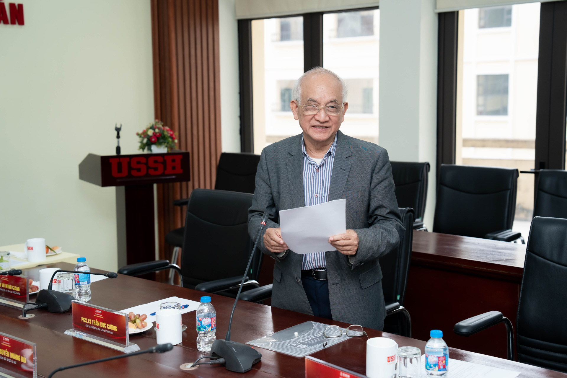 PGS.TS Trần Đức Cường - Chủ tịch Hội Khoa học Lịch sử Việt Nam trình bày tham luận Tư tưởng Hồ Chí minh về Văn hoá và Văn minh