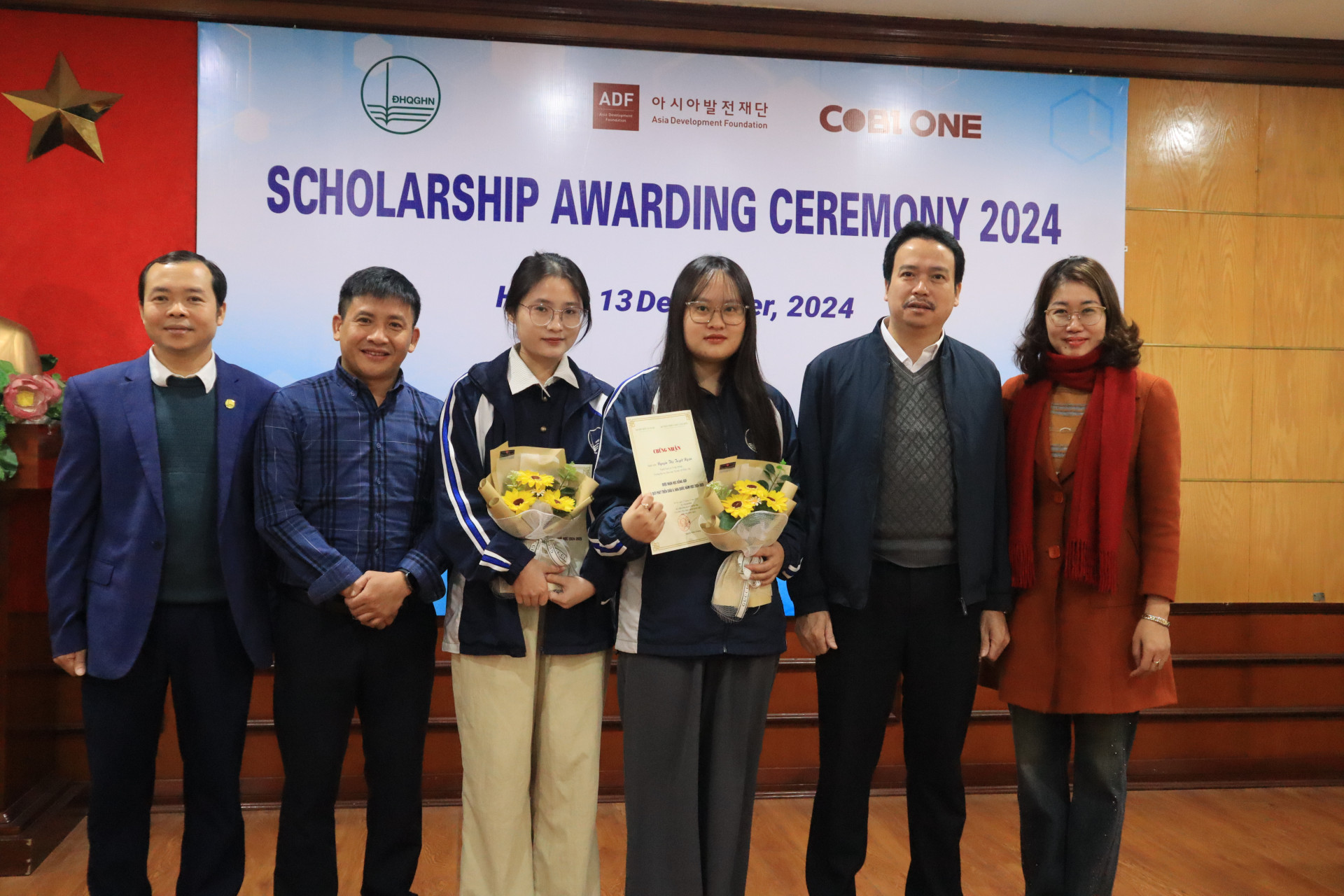 Các em sinh viên VNU-USSH cùng sinh viên các trường đại học thuộc ĐHQGHN vinh dự nhận học bổng của Quỹ phát triển châu Á năm 2024