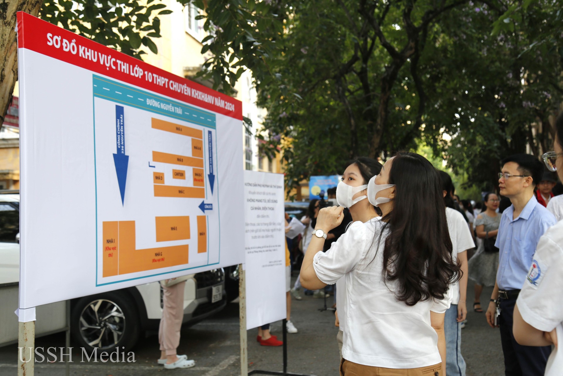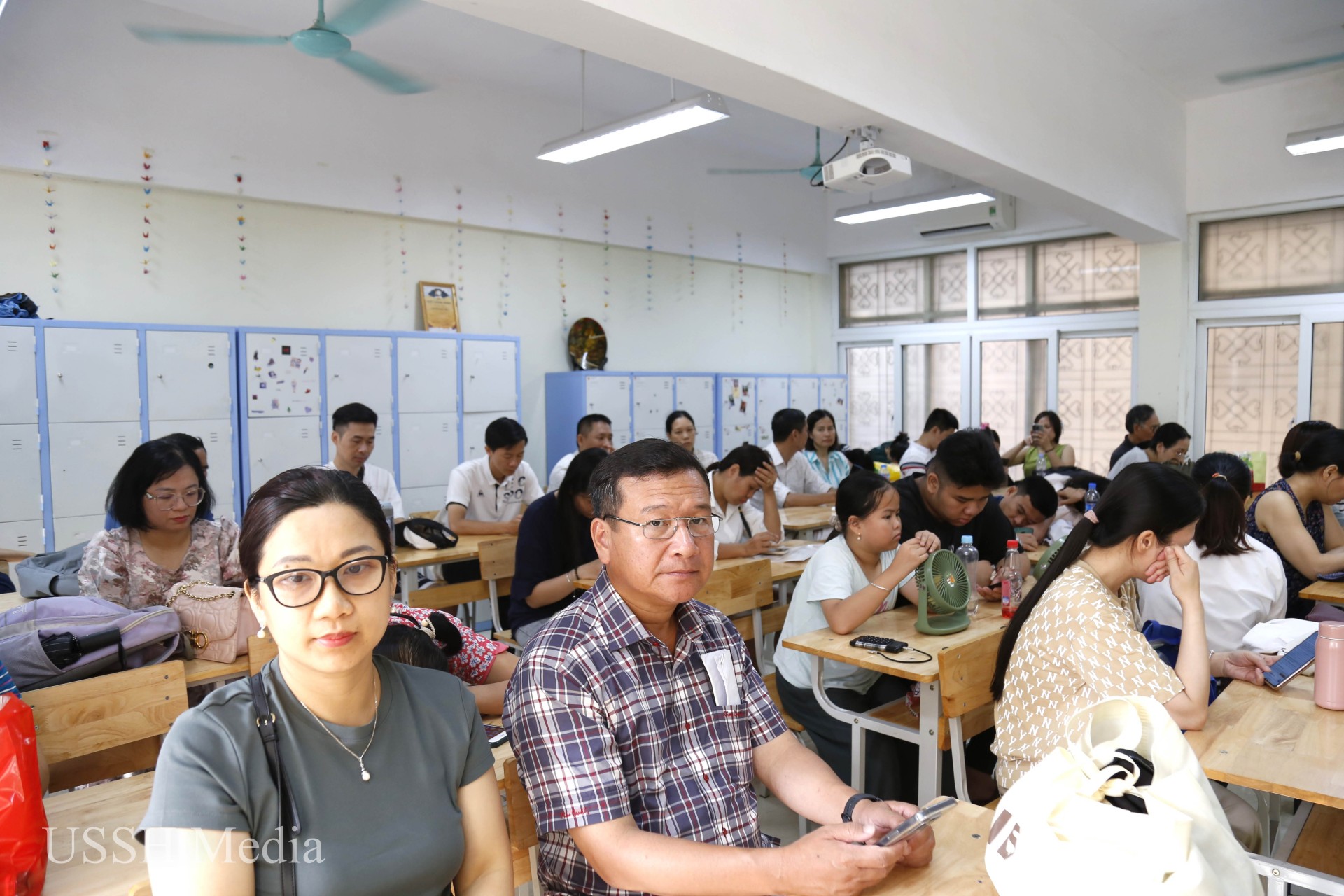 Nhà trường đã chuẩn bị các phòng chờ có điều hoà mát mẻ dành cho phụ huynh đưa con tham gia kỳ thi vào trường THPT chuyên KHXHNV