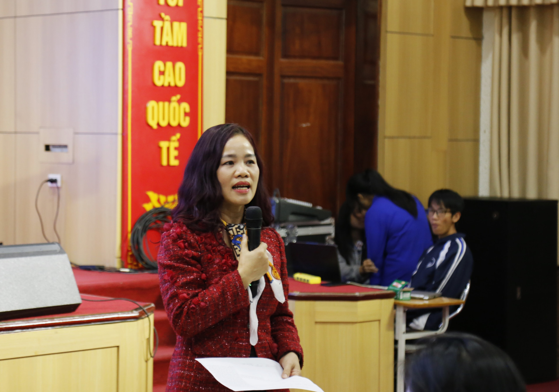 Phát biểu khai mạc chương trình, PGS.TS Đặng Thị Thu Hương - Phó hiệu trưởng Trường ĐH KHXH&NV, ĐHQGHN cho biết, trong thời gian qua, nhà trường có nhiều đổi mới trong việc hỗ trợ, tương tác với SV. Các diễn đàn đối thoại giữa nhà trường và sinh viên không chỉ diễn ra tại chương trình đối thoại thường niên mà được triển khai hàng tuần bằng các hoạt động trao đổi thông tin của Phòng Đào tạo, Phòng Chính trị và Công tác HS-SV, giúp cho công tác đào tạo, chăm sóc học sinh, sinh viên có sự điều chỉnh kịp thời để hỗ trợ các em trong quá trình học tập tại nhà trường.