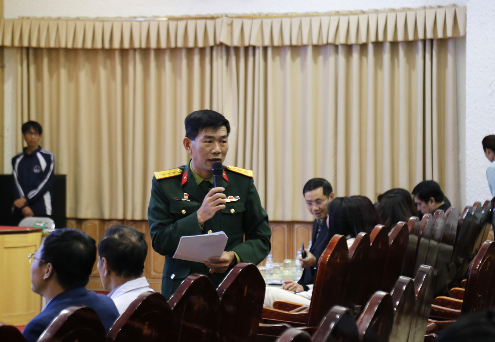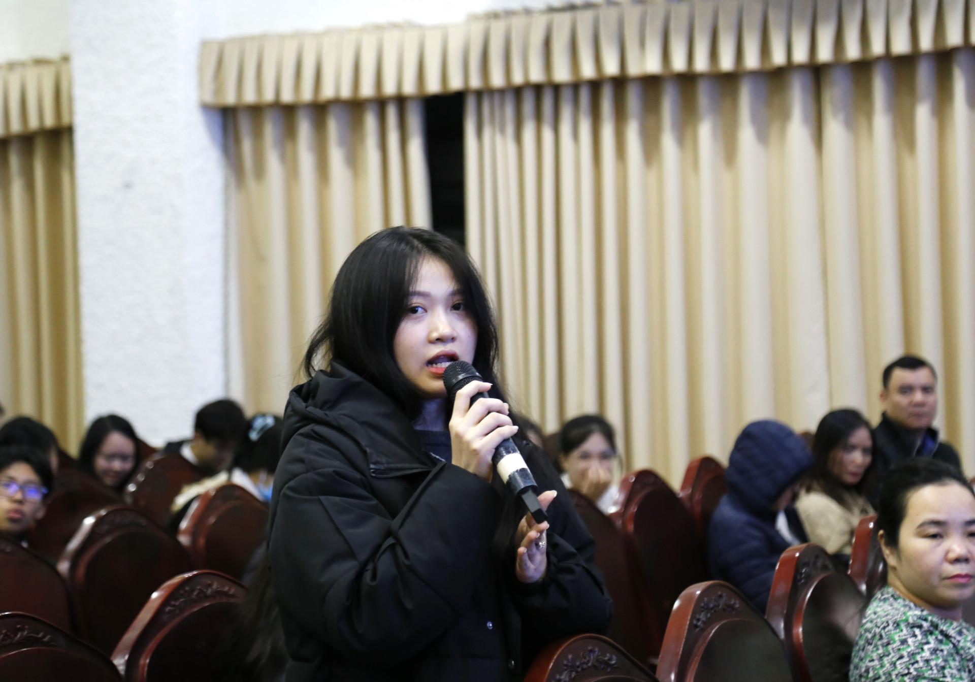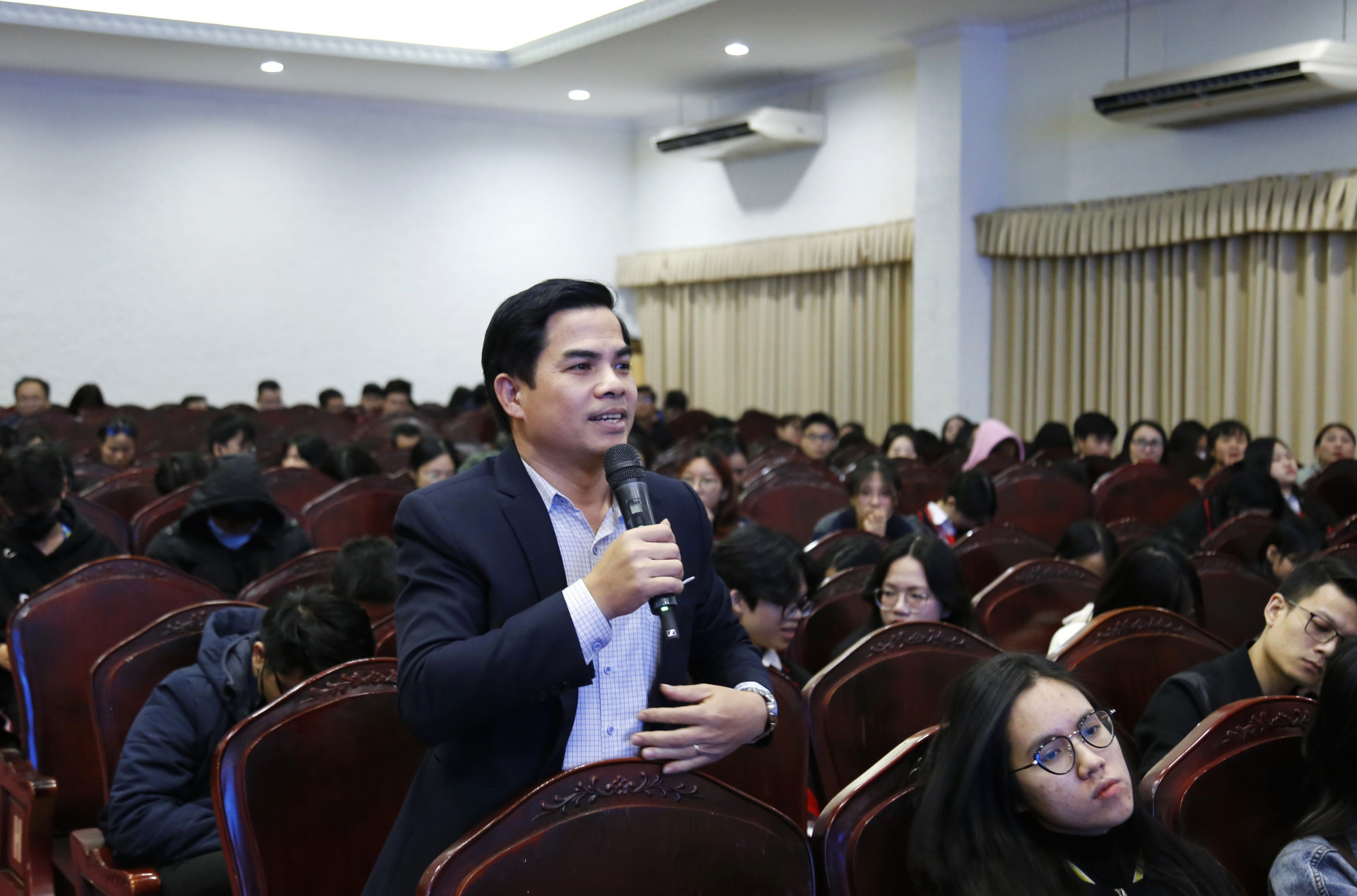Em Phạm Thế Anh - Sinh viên K69 ngành Ngôn ngữ học đặt câu hỏi về việc sử dụng cơ sở vật chất cho sinh viên