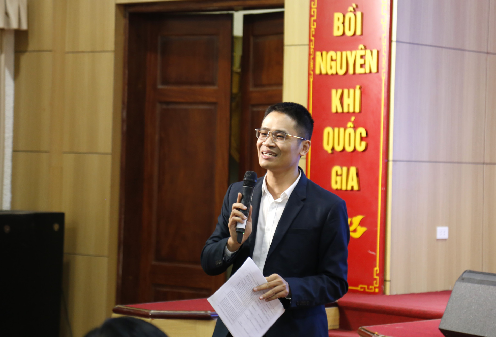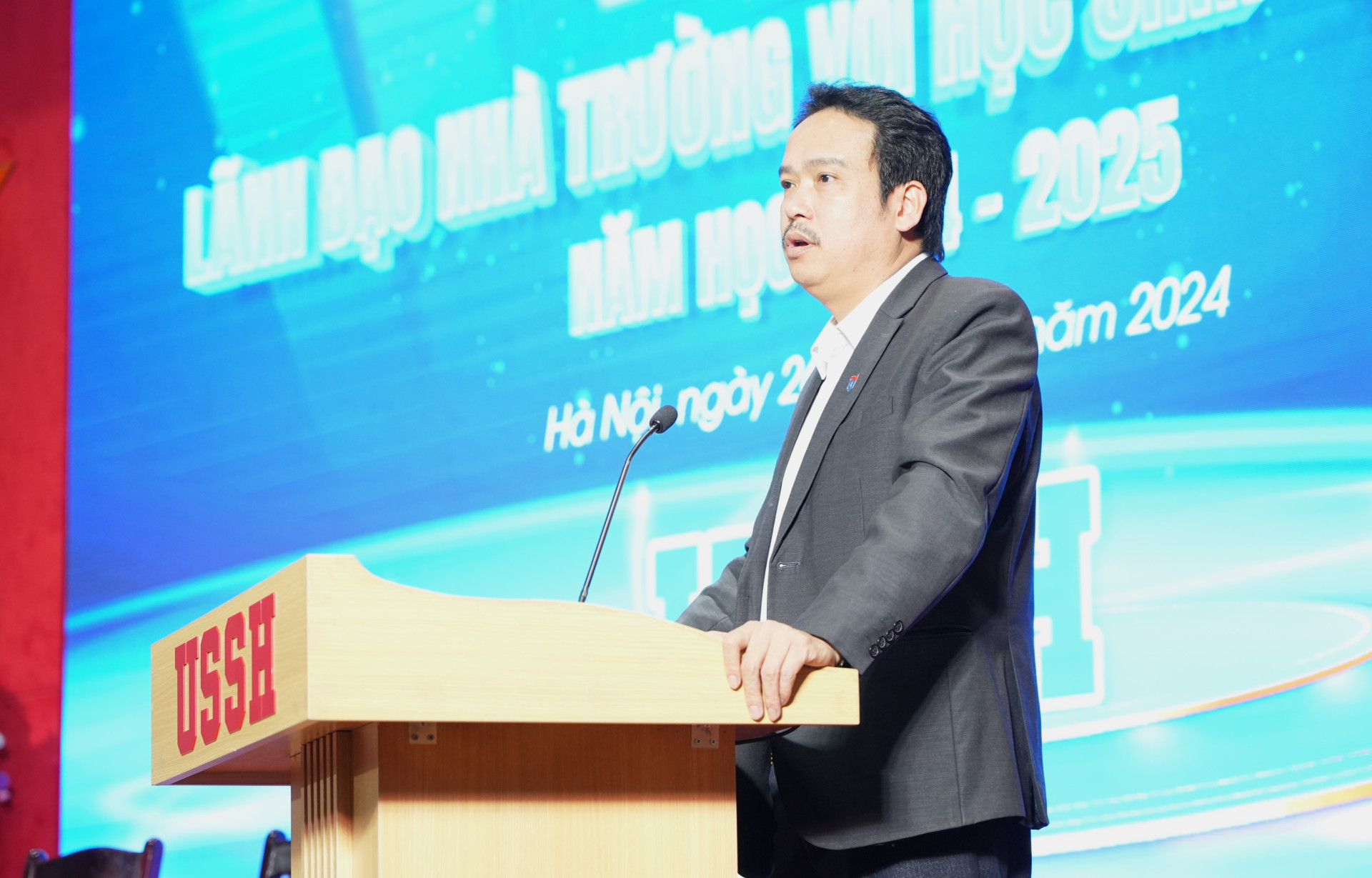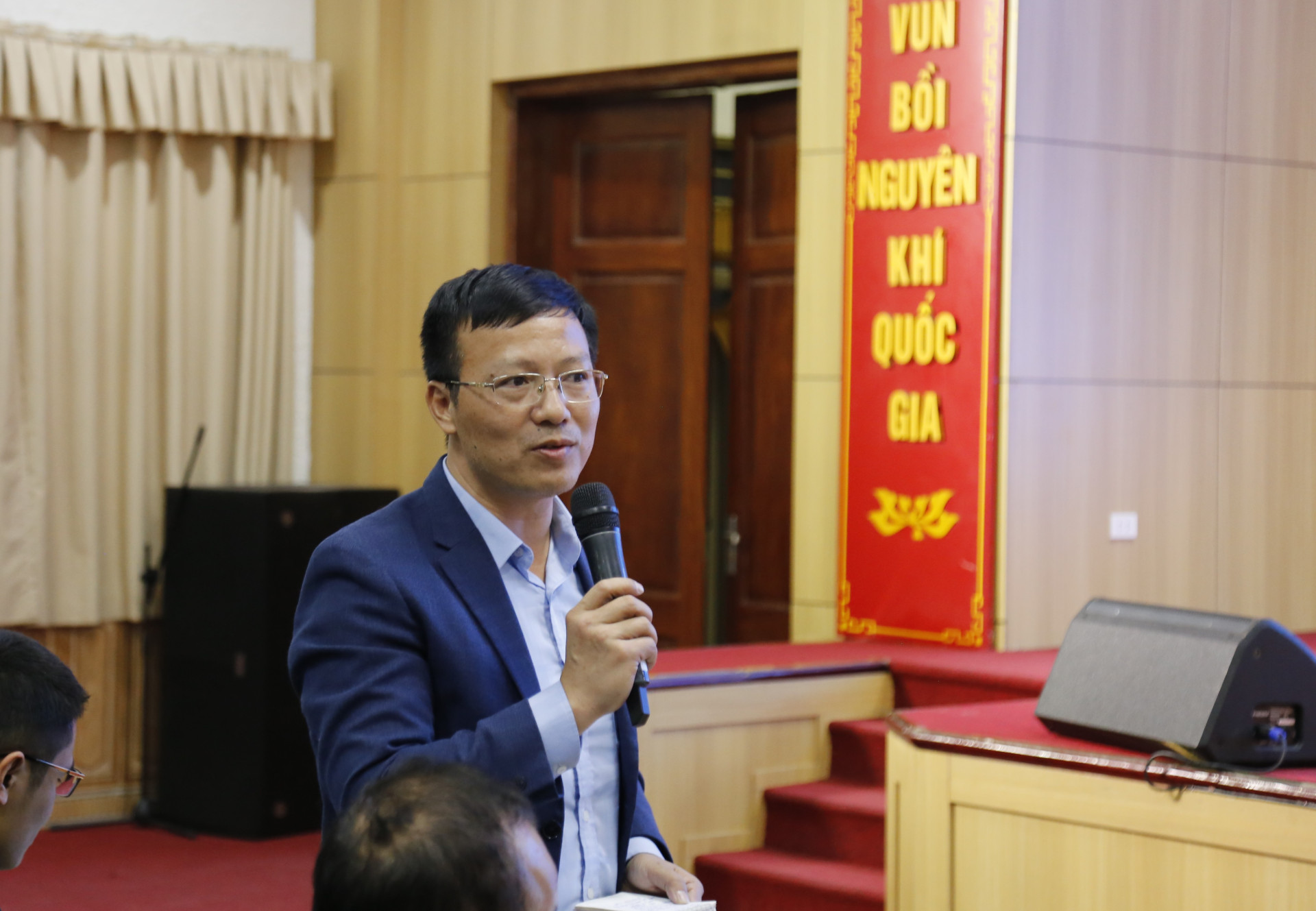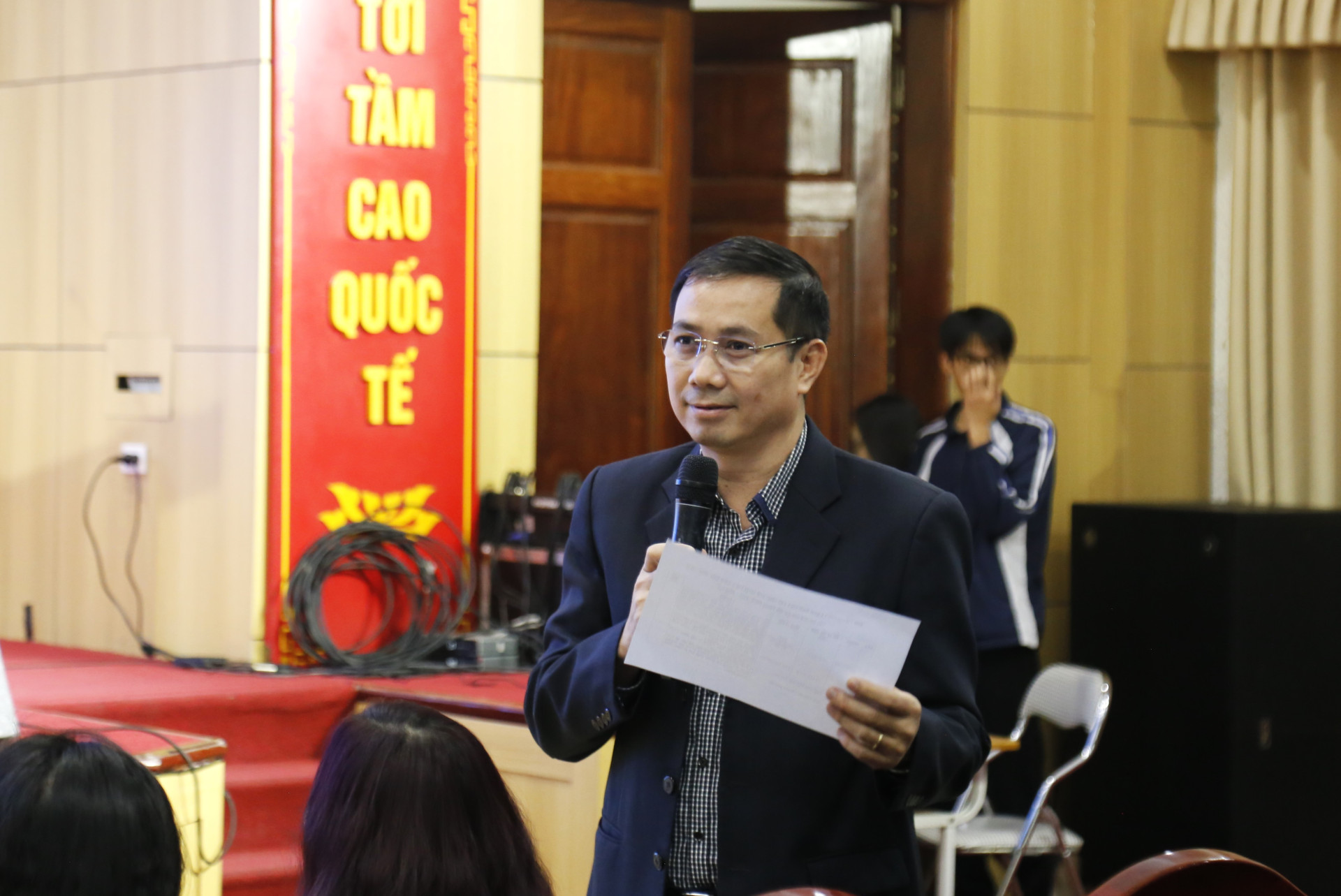 Ths.Nguyễn Văn Thủy - Trưởng phòng Hành chính tổng hợp giải đáp cho sinh viên những thông tin về cơ sở vật chất phục vụ học tập và giảng dạy tại Trường ĐH KHXH&NV