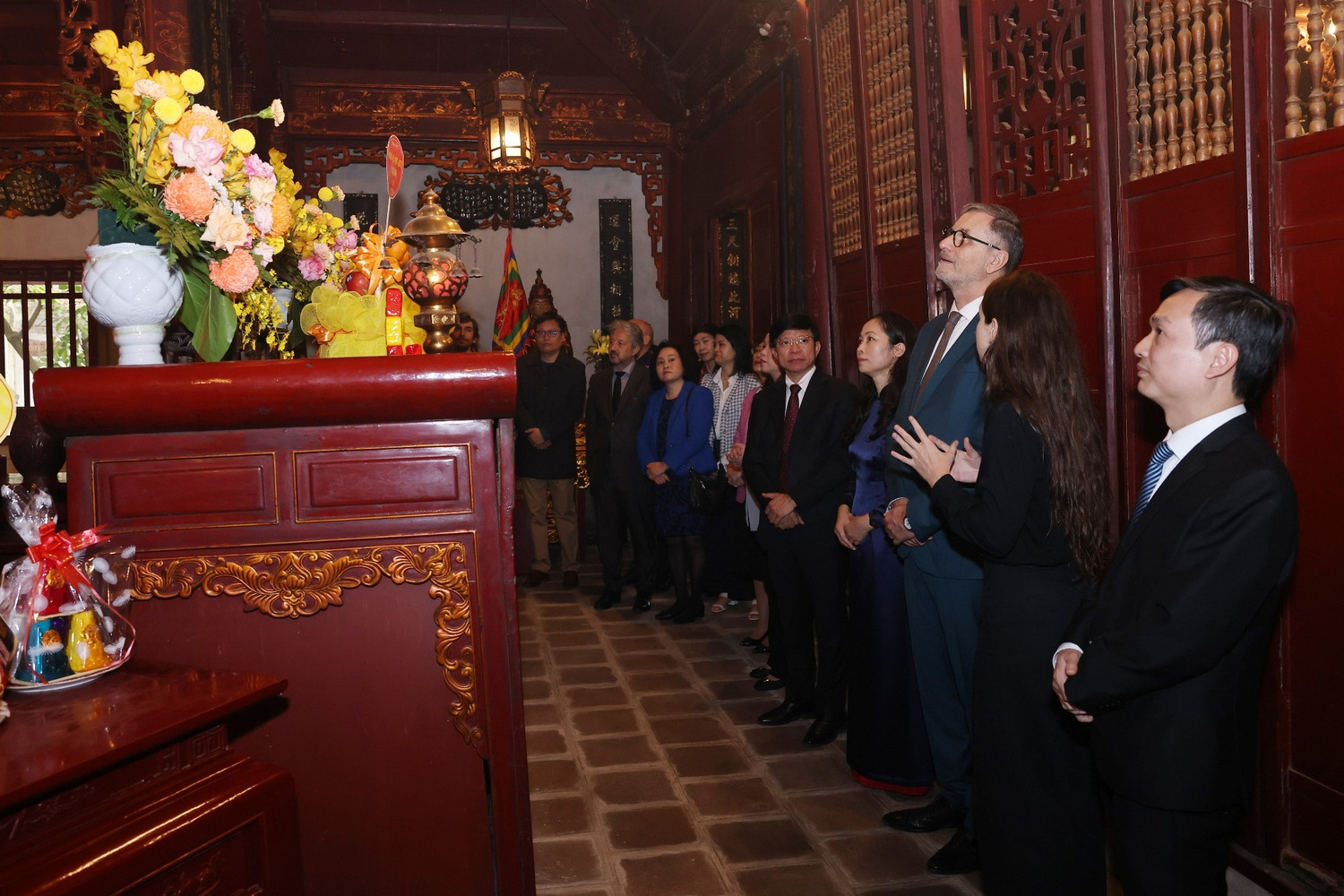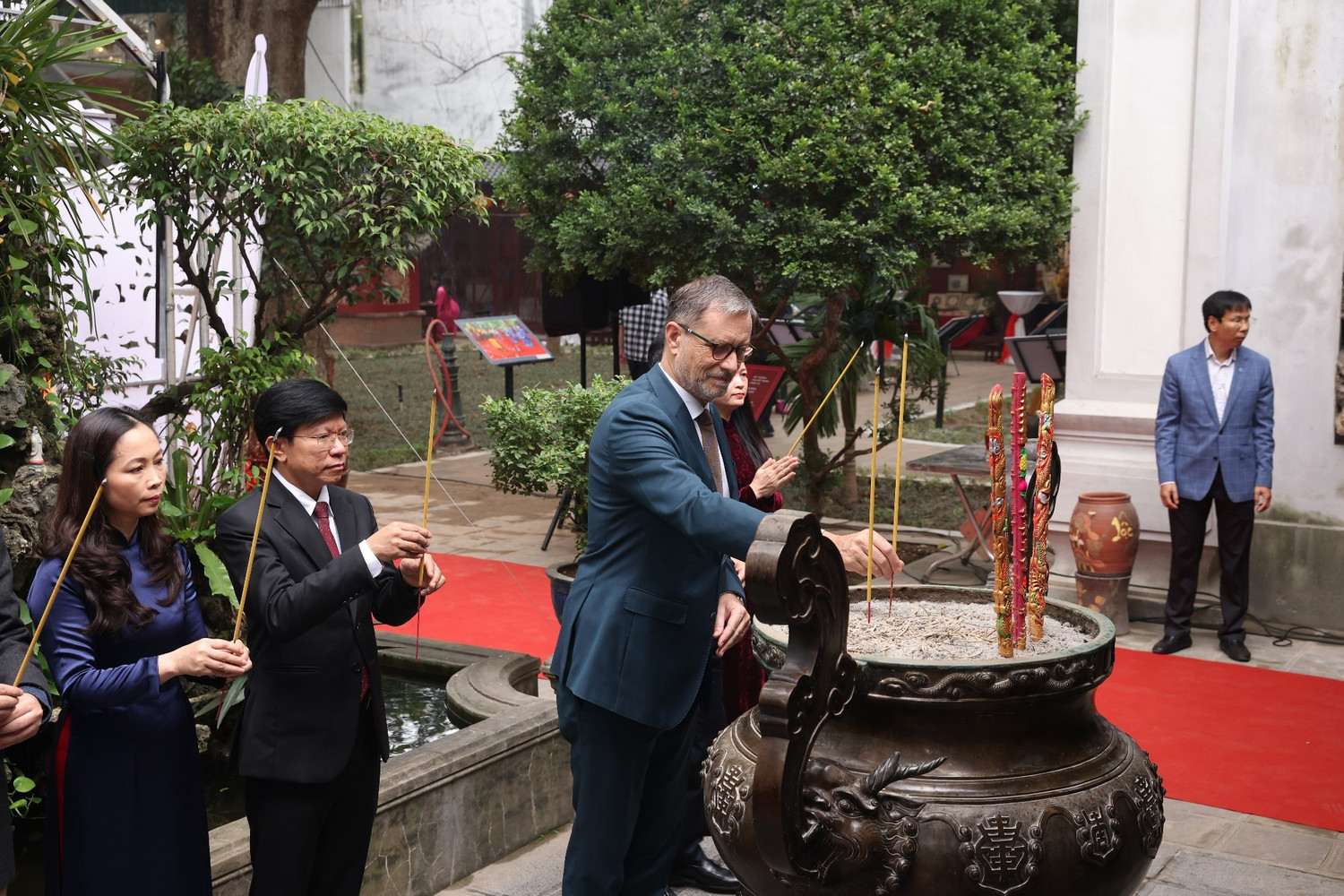 Đại sứ Olivier Brochet tham gia các hoạt động trong lễ ra mắt sáng nay tại Đền Quán Thánh. (Ảnh: Mai Mai/Vietnam+)