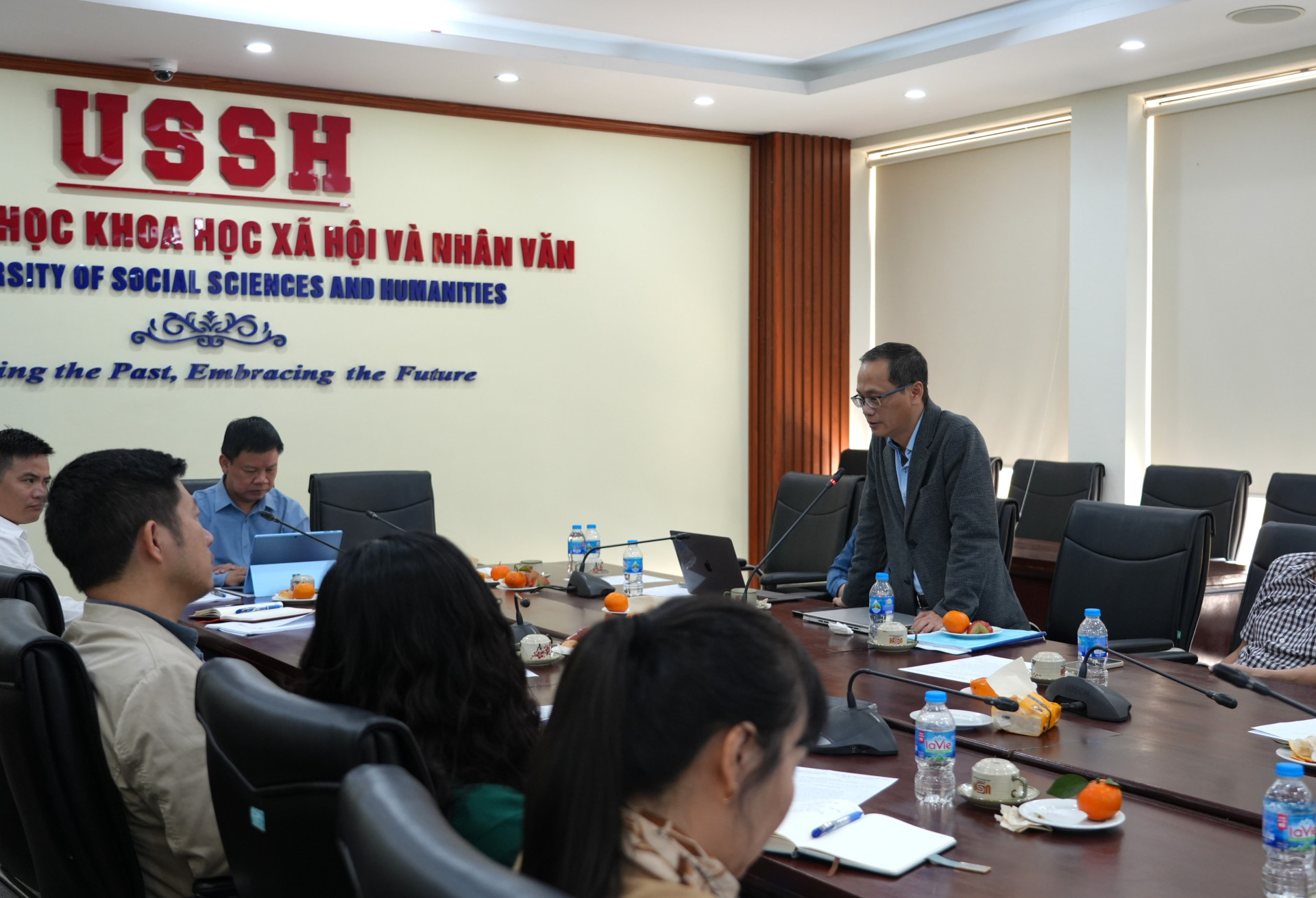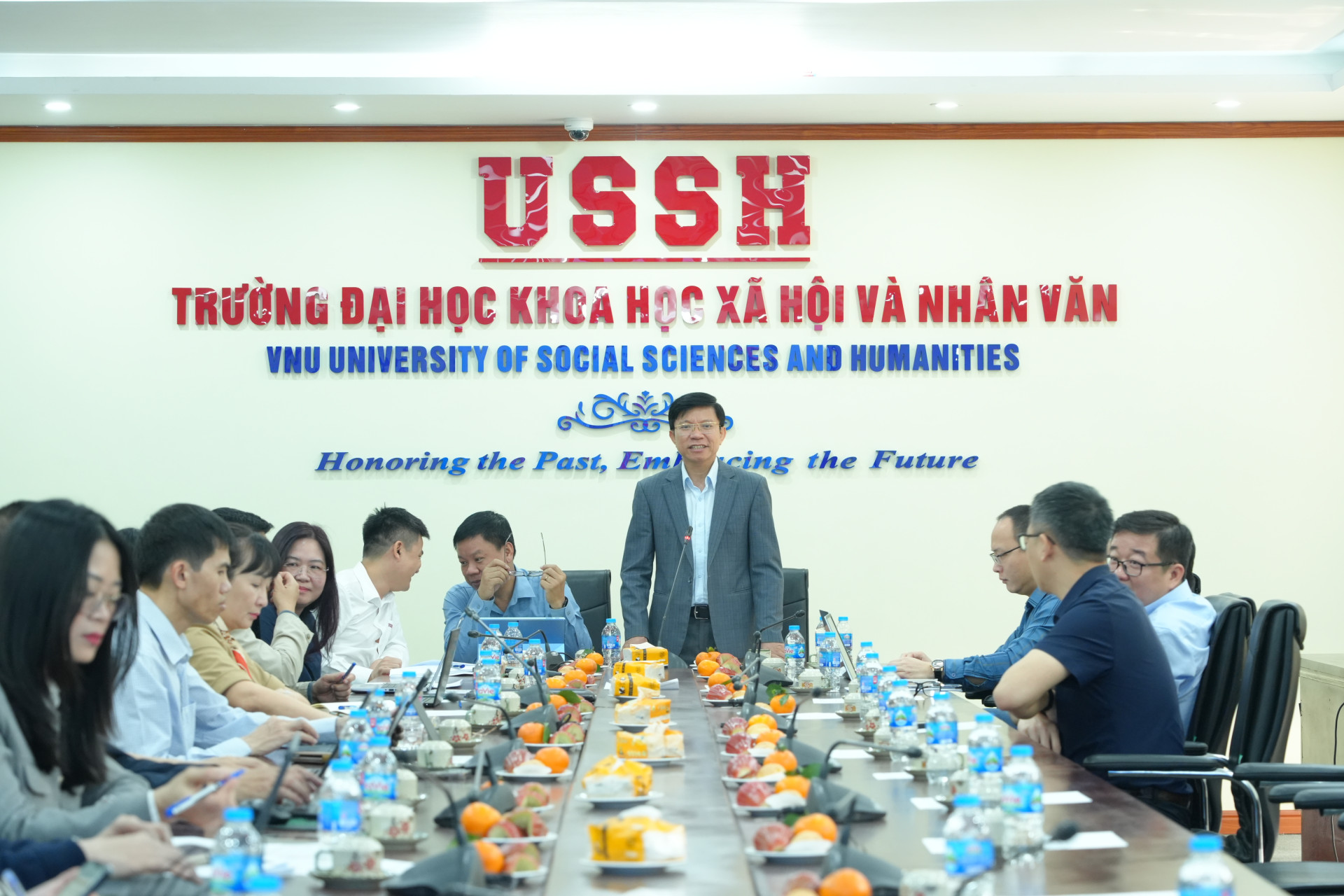 GS.TS Lại Quốc Khánh - Phó Hiệu trưởng Trường ĐH KHXH&NV chủ trì hội nghị