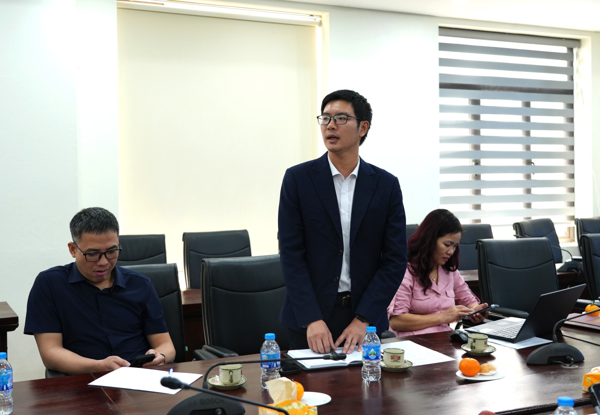 TS. Trịnh Văn Định - Trưởng phòng Quản lý và NCKH trình bày báo cáo công tác NCKH năm 2024