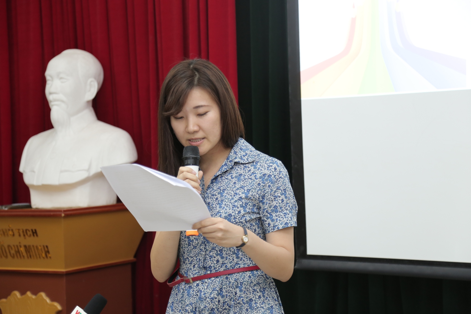 Naoko Kobayashi, nữ sinh đạt giải nhất cuộc thi "Thư Việt Nam" đang đọc một đoạn trong thư, nói về phẩm chất "tha thứ" của người Việt