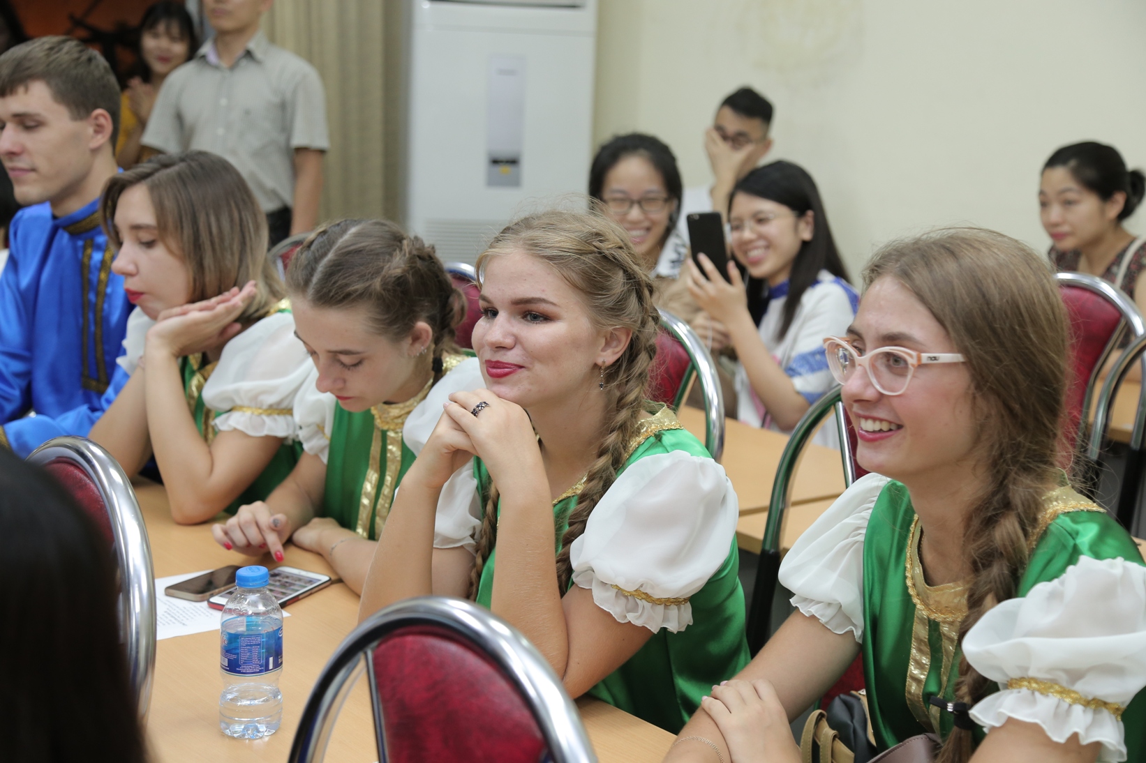 Những sinh viên Nga vừa tham gia một sự kiện ở Trung tâm Văn hóa Nga và kịp trở về để chuẩn bị tham gia chương trình văn nghệ với bài hát Ka chiu sa