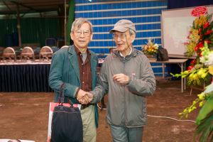 Đại sứ Palestine Saadi Salama vui mừng gặp lại thầy giáo cũ - nhà giáo Nguyễn Hữu Khang (nguyên Phó Chủ nhiệm Khoa Tiếng Việt)
