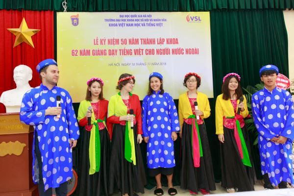 Tiết mục văn nghệ của sinh viên Khoa Việt Nam học và Tiếng Việt chào đón các vị quan khách