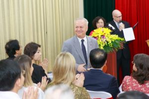 GS.TS Phạm Quang Minh (Hiệu trưởng Nhà trường) và các cán bộ Khoa Việt Nam học và Tiếng Việt