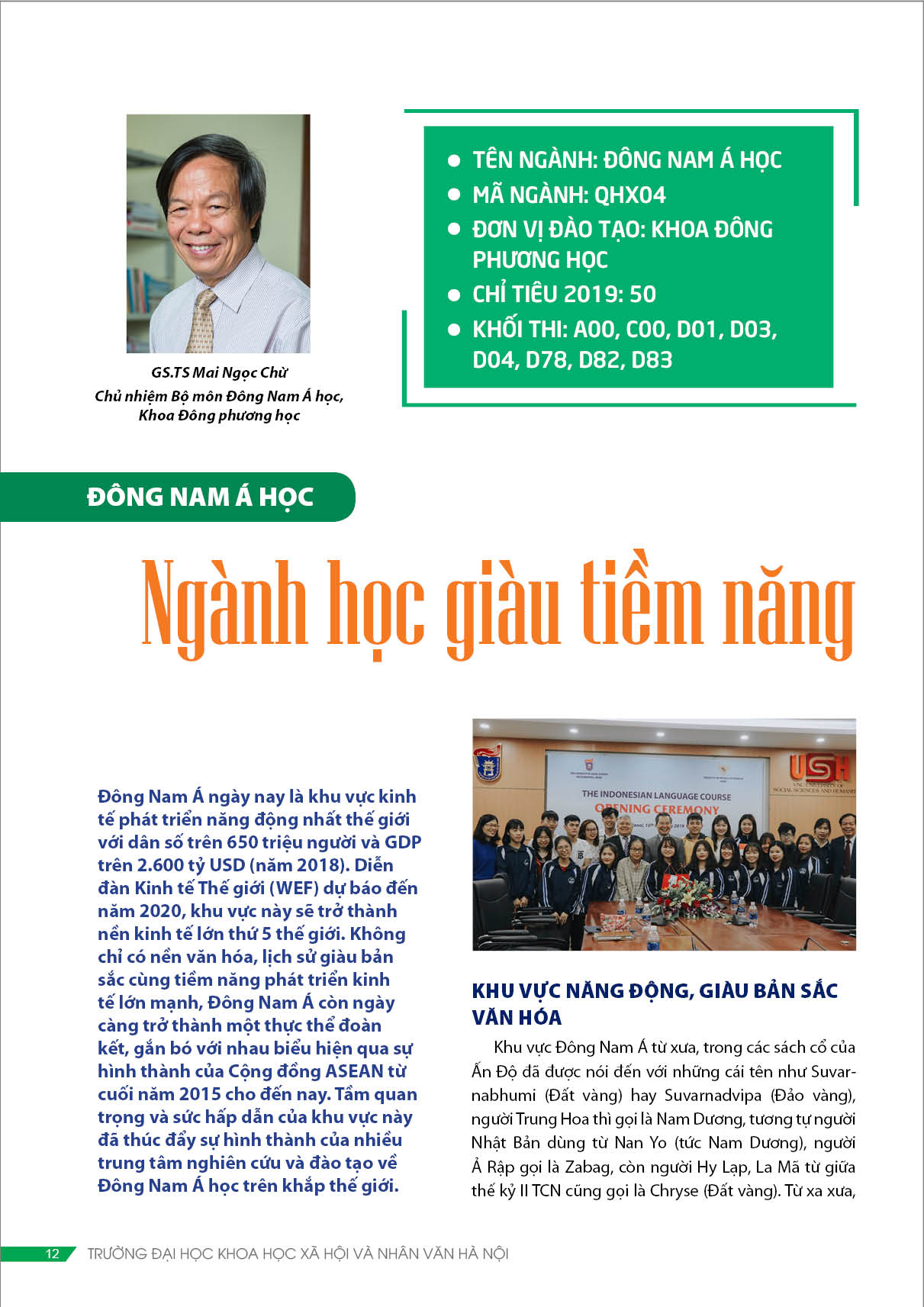 Đông Nam Á ngày nay là khu vực kinh tế phát triển năng động nhất thế giới với dân số trên 650 triệu người và GDP trên 2.600 tỷ USD (năm 2018). Diễn đàn Kinh tế Thế giới (WEF) dự báo đến năm 2020, khu vực này sẽ trở thành nền kinh tế lớn thứ 5 thế giới. Không chỉ có nền văn hóa, lịch sử giàu bản sắc cùng tiềm năng phát triển kinh tế lớn mạnh, Đông Nam Á còn ngày càng trở thành một thực thể đoàn kết, gắn bó với nhau biểu hiện qua sự hình thành của Cộng đồng ASEAN từ cuối năm 2015 cho đến nay. Tầm quan trọng và sức hấp dẫn của khu vực này đã thúc đẩy sự hình thành của nhiều trung tâm nghiên cứu và đào tạo về Đông Nam Á học trên khắp thế giới.