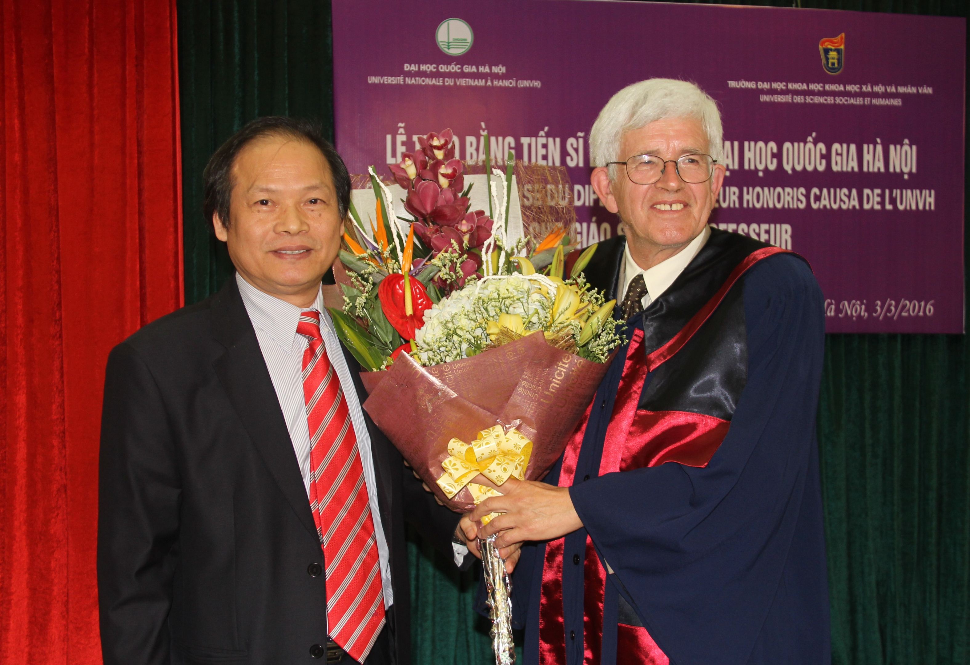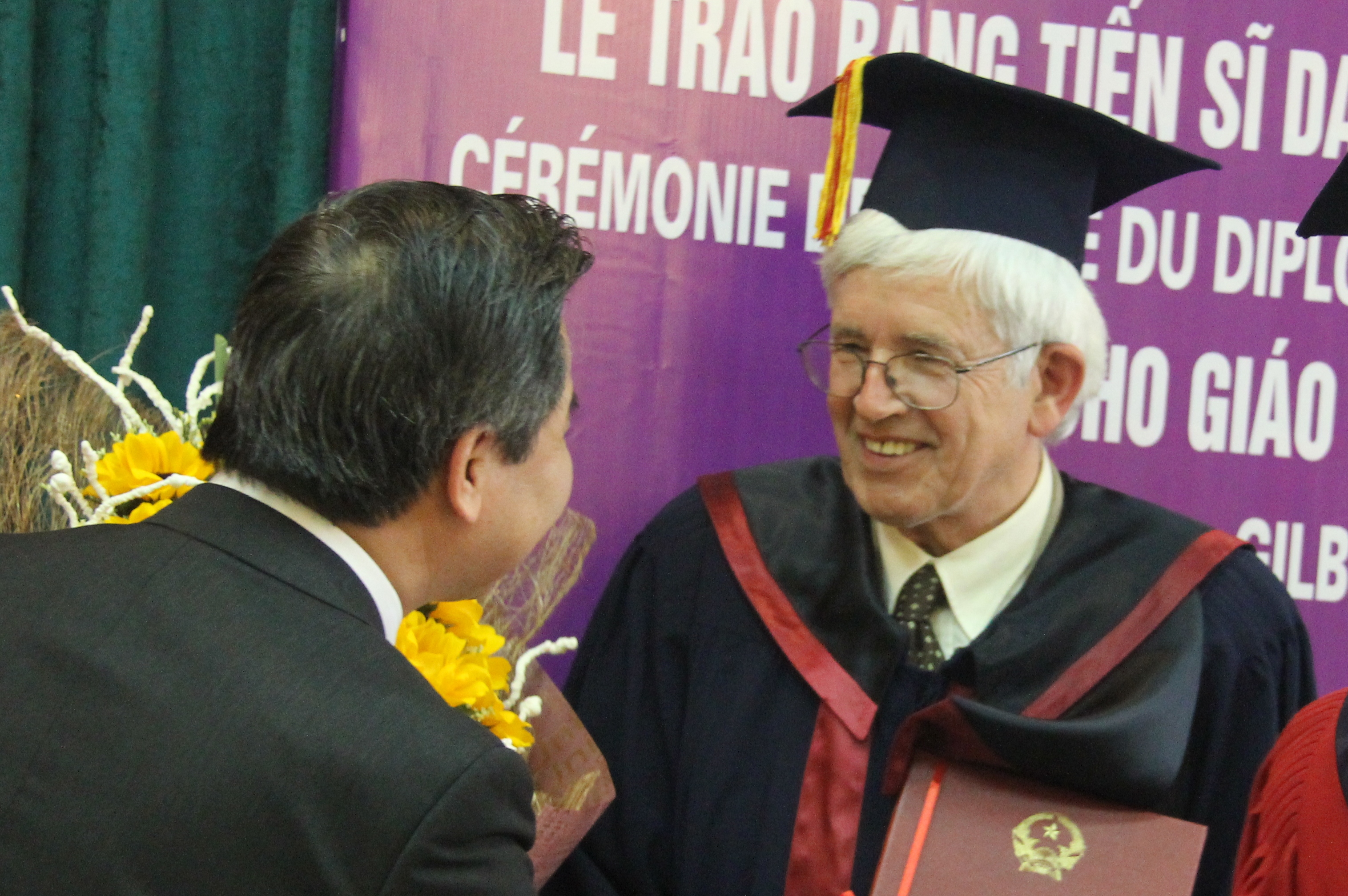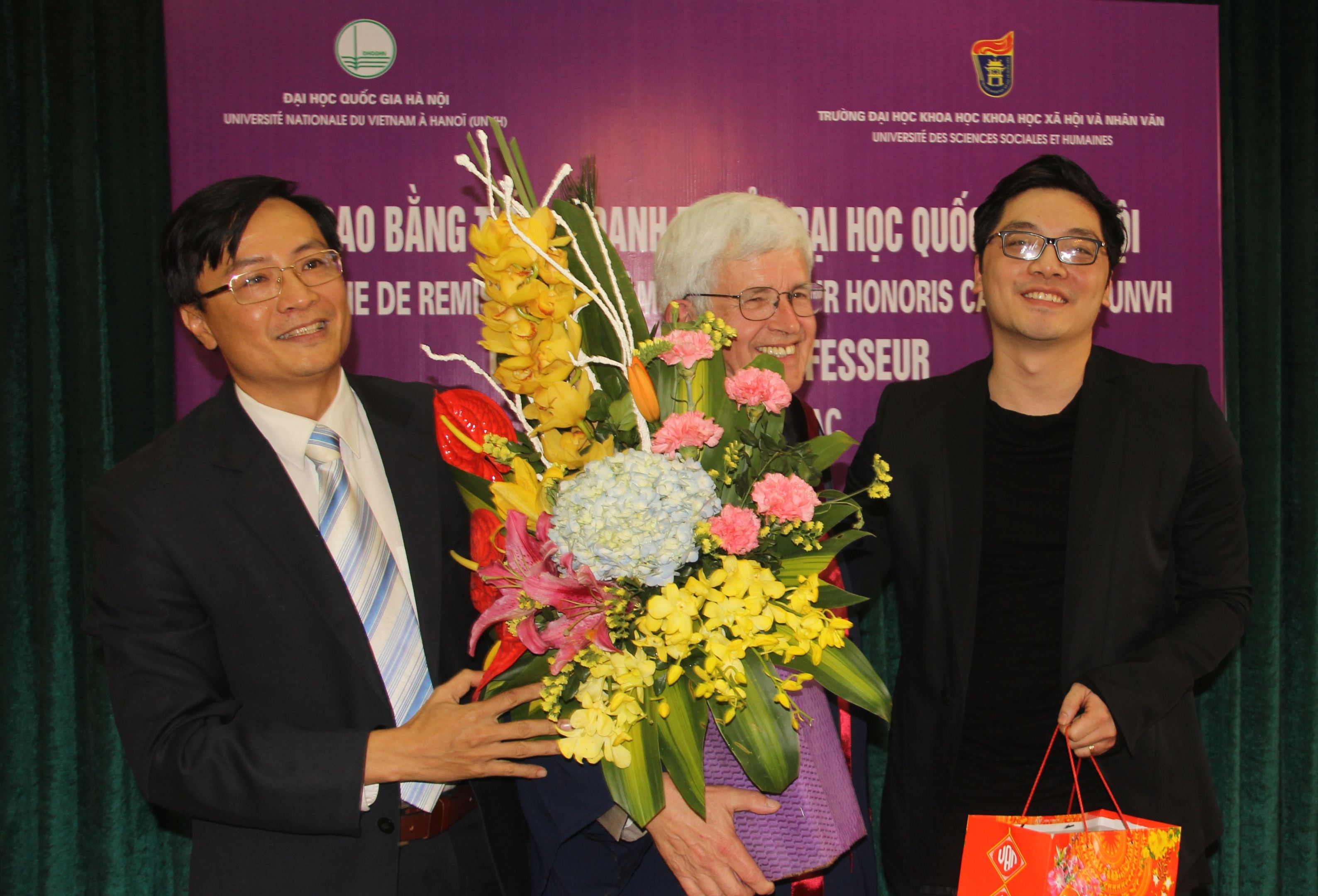 GS.TS Nguyễn Văn Khánh tặng hoa chúc mừng GS. Gilbert De Terssac