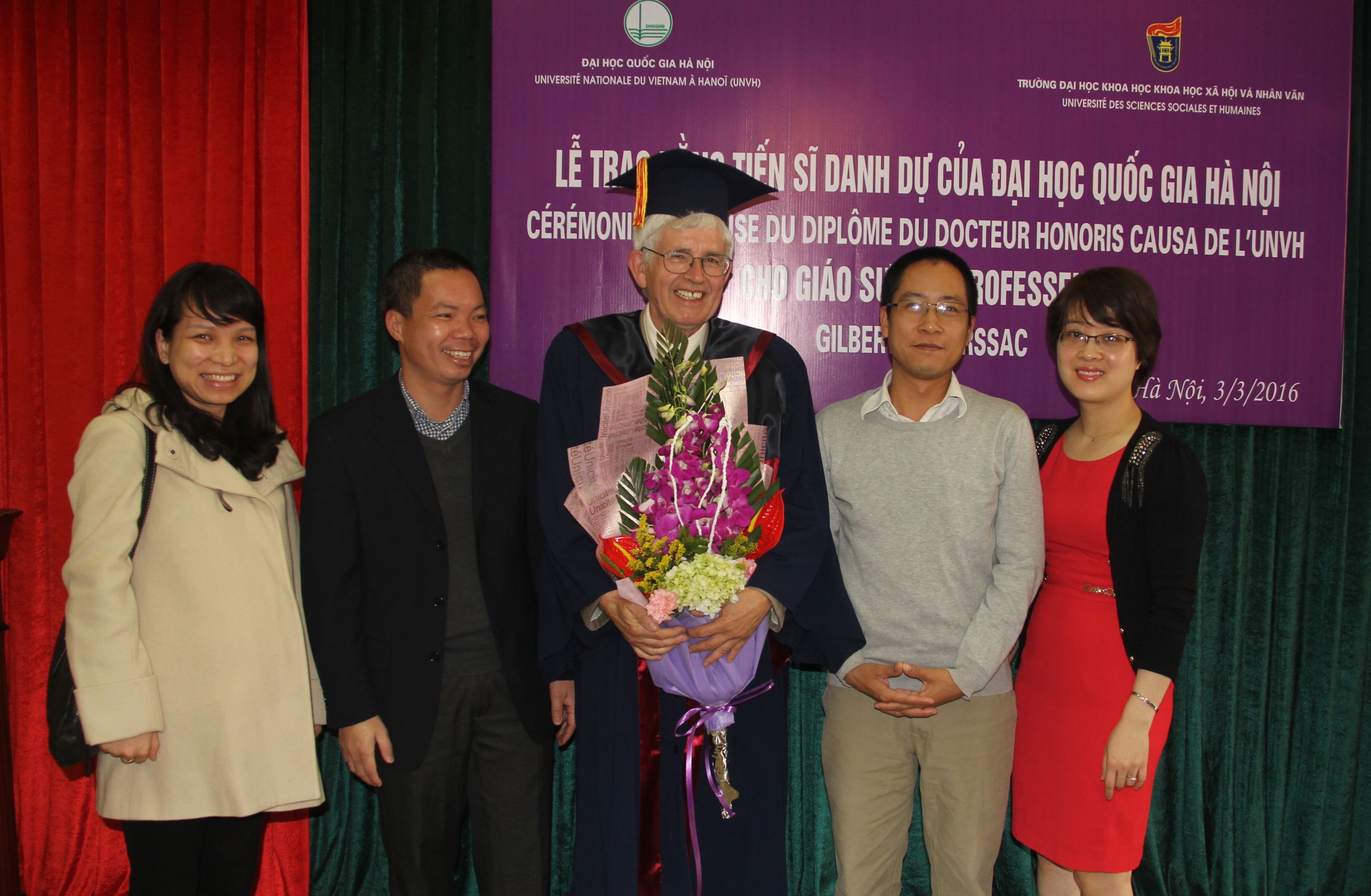 GS.TS Nguyễn Văn Khánh, nguyên Hiệu trưởng Trường ĐHKHXH&NV thì chia sẻ: với tư cách một người đồng nghiệp, người bạn lâu năm của GS, tôi rất vui mừng và cảm động khi có mặt ở đây để chúc mừng GS nhận được danh hiệu cao quý này. Đóng góp của GS. Gilbert De Terssac không chỉ thuần túy là các hoạt động chuyên môn, khoa học mà trên hết là những tình cảm thực sự, là tình yêu dành cho đất nước và con người Việt Nam.