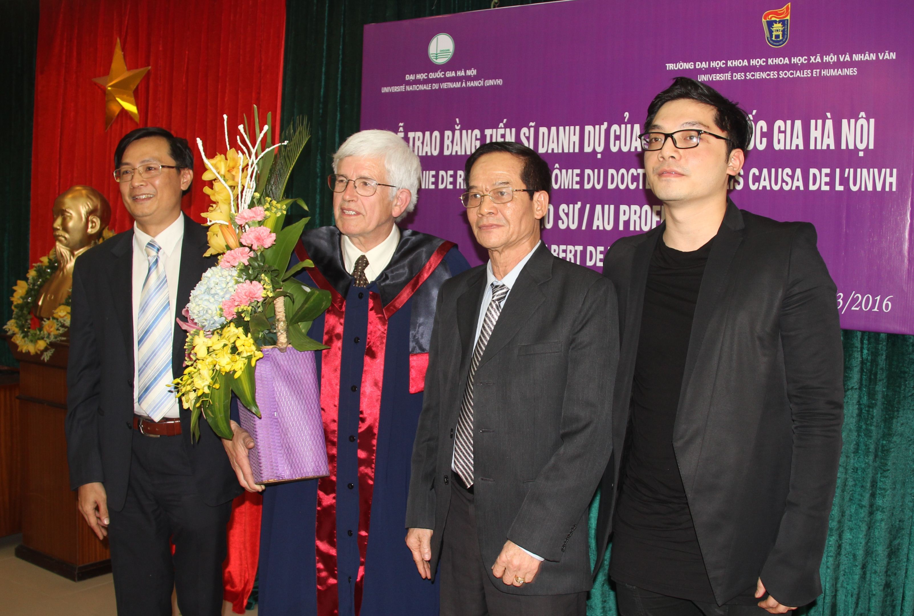 Trân trọng và ghi nhận những đóng góp to lớn và quý báu của GS. Gilbert De Terssac, Hiệu trưởng Phạm Quang Minh phát biểu: Hành trình hợp tác vừa qua cho phép chúng tôi khẳng định rằng, GS. Gilbert De Terssac là một người bạn lớn của chúng tôi. Chúng tôi luôn khắc ghi hình ảnh của GS. Gibert De Terssac là một nhà khoa học lớn, tâm huyết, yêu quý con người và văn hóa Việt Nam một cách nhiệt thành và luôn muốn cống hiến những gì tốt nhất cho Nhà trường, cho ĐHQGHN và cho đất nước Việt Nam.