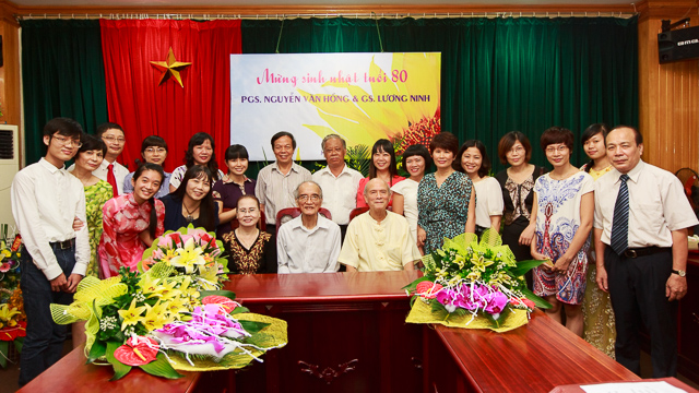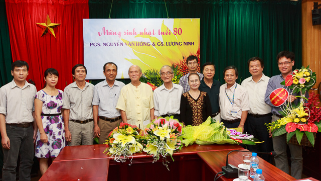 PGS. Nguyễn Văn Hồng, GS. Lương Ninh và các thế hệ cán bộ, sinh viên Khoa Đông phương học (Ảnh: Thành Long)
