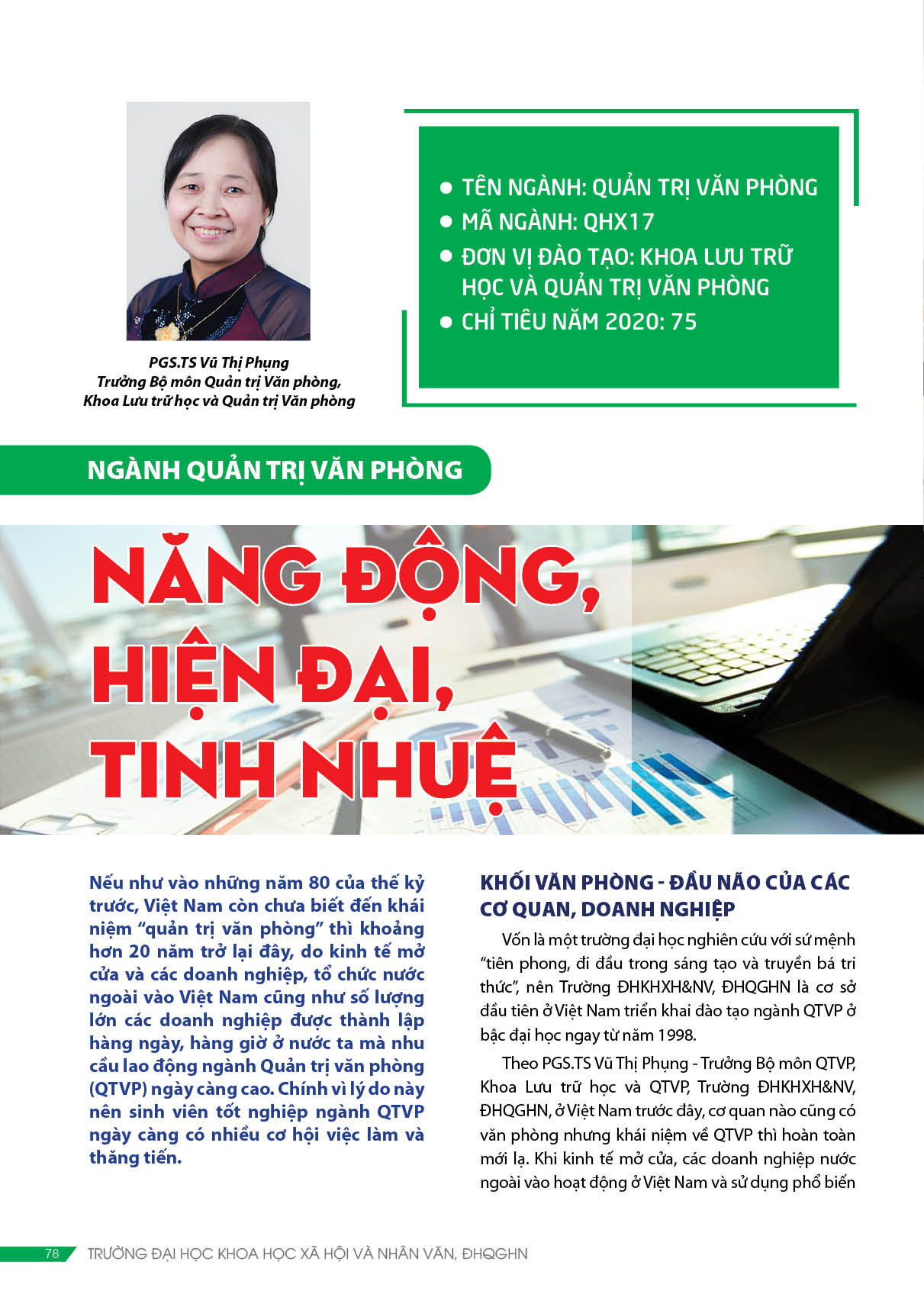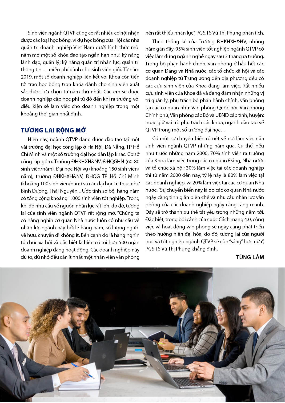 Nếu như vào những năm 80 của thế kỷ trước, Việt Nam còn chưa biết đến khái niệm "quản trị văn phòng" thì khoảng hơn 20 năm trở lại đây, do kinh tế mở cửa và các doanh nghiệp, tổ chức nước ngoài vào Việt Nam cũng như số lượng lớn các doanh nghiệp được thành lập hằng ngày, hằng giờ ở nước ta mà nhu cầu lao động ngành quản trị văn phòng (QTVP) ngày càng cao. Chính vì lý do này nên sinh viên tốt nghiệp ngành QTVP ngày càng có nhiều cơ hội việc làm và thăng tiến.
