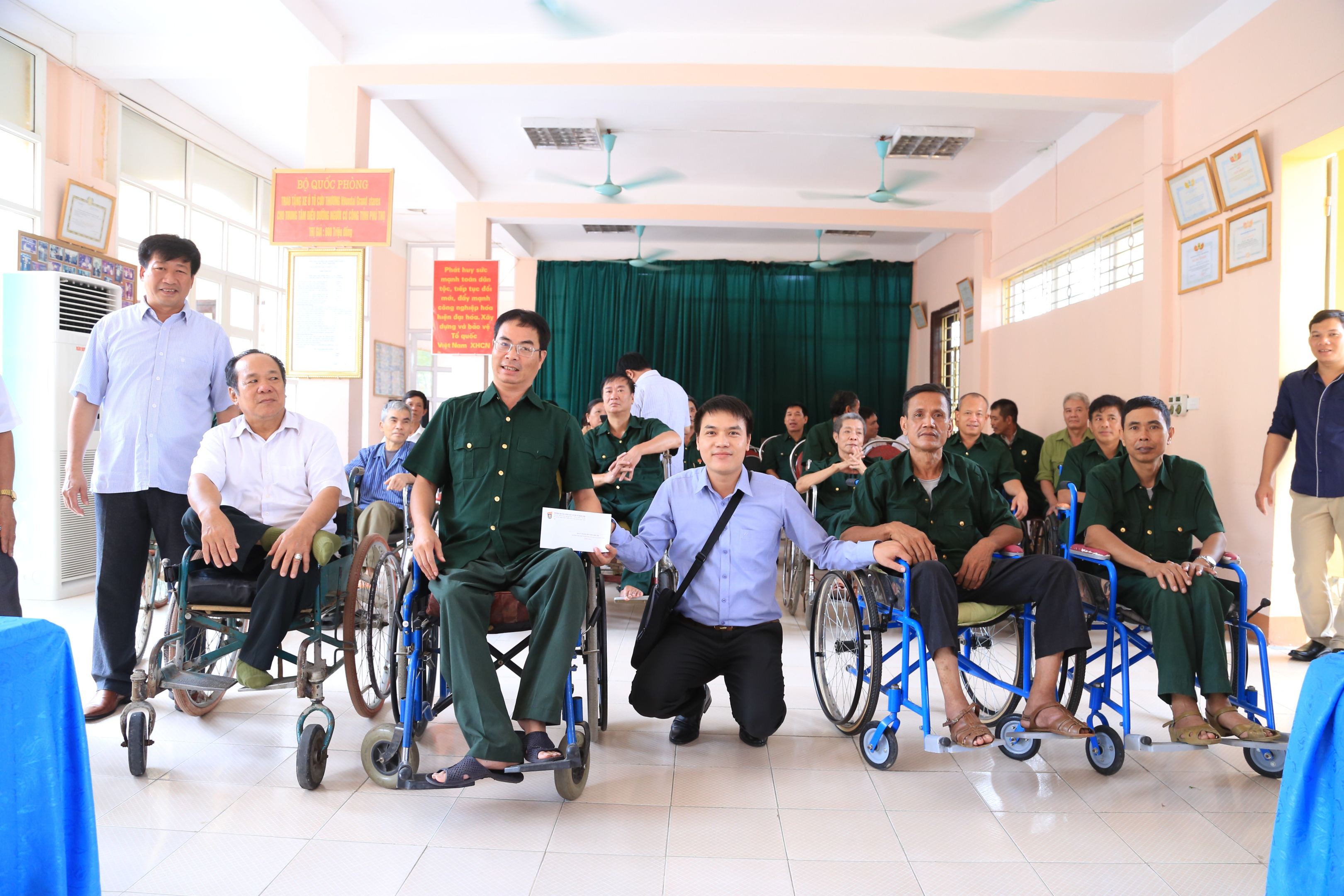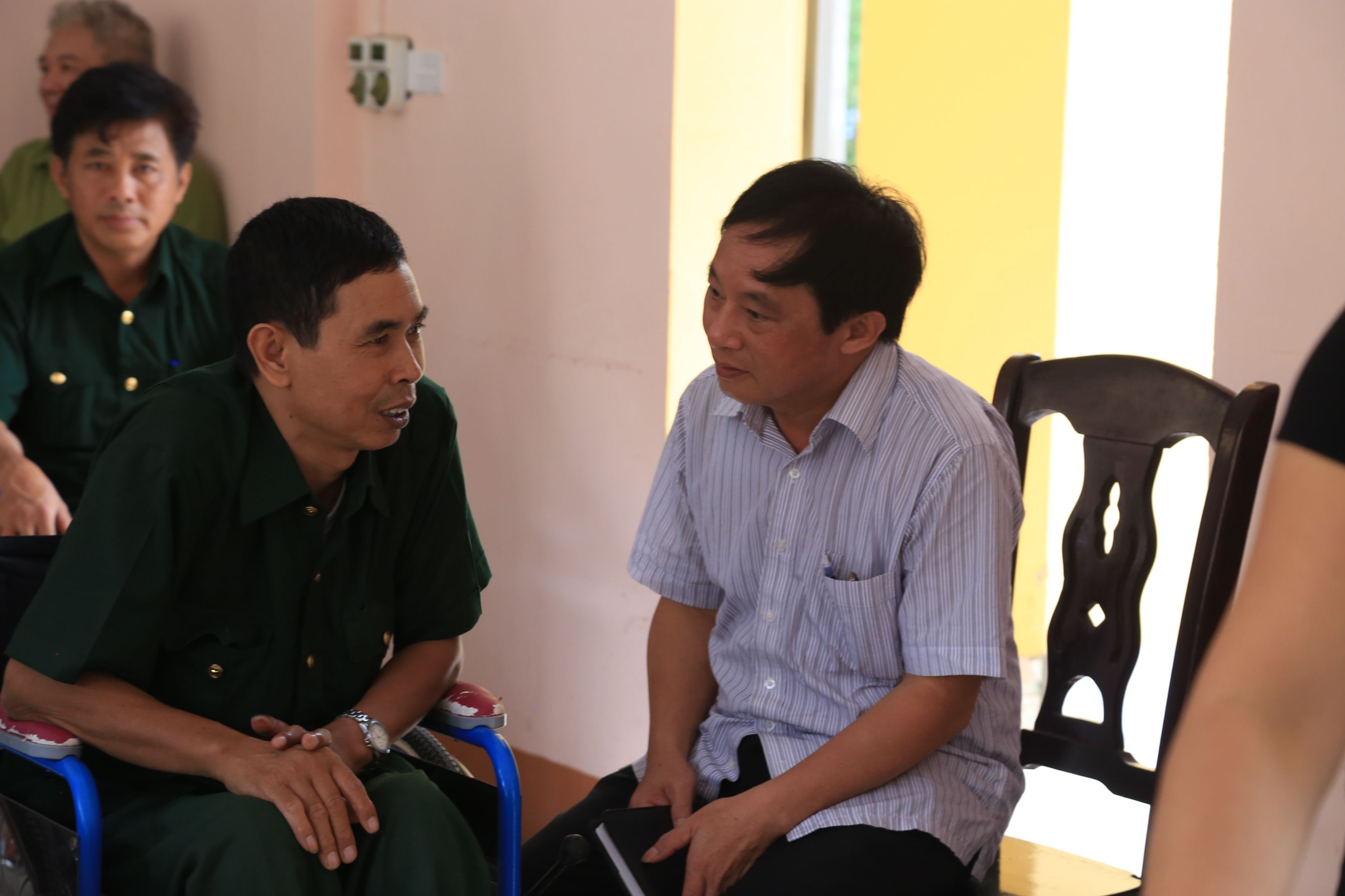 Thương binh Hoàng Xuân Thịnh, nhập ngũ năm 1961 tham gia chiến trường Quảng Ngãi, trong một trận đánh một tiểu đoàn đổ bộ, không may một trái bom phá nổ ngay vị trí anh nấp, một mảnh bom găm vào cột sống buộc anh phải ngồi xe lăn suốt đời. Quê anh ở miền Tây Nghệ An nơi có người vợ hiền chịu khó đảm đang, tham gia tích cực công tác dân quân tự vệ. Chị đã từng ngồi trên mâm pháo bảo vệ sân bay dã chiến Trường Sơn. Rồi vác đạn, lấp đường ray phục vụ chiến đấu cho sân bay dẫn đến chị bị sụn xương, viêm đã khớp nặng. Thương binh Nguyễn Quốc Trường quê ở Hà Nam cũng mang trong mình một nỗi đau như thế. Tham gia chiến trường mền Tây Nam Bộ bị mảnh bom phá chém vào sọ não, cột sống và vào phổi. Anh kéo vạt áo lên chỉ vào lưng, có chỗ lõm bằng nửa bàn tay mất hẳn. Anh cho biết, một mảnh bom đã khoét sâu vào ngực, để đảm bảo an toàn cho phổi, buộc phải hy sinh một một phần máu thịt để giành lấy cuộc sống.