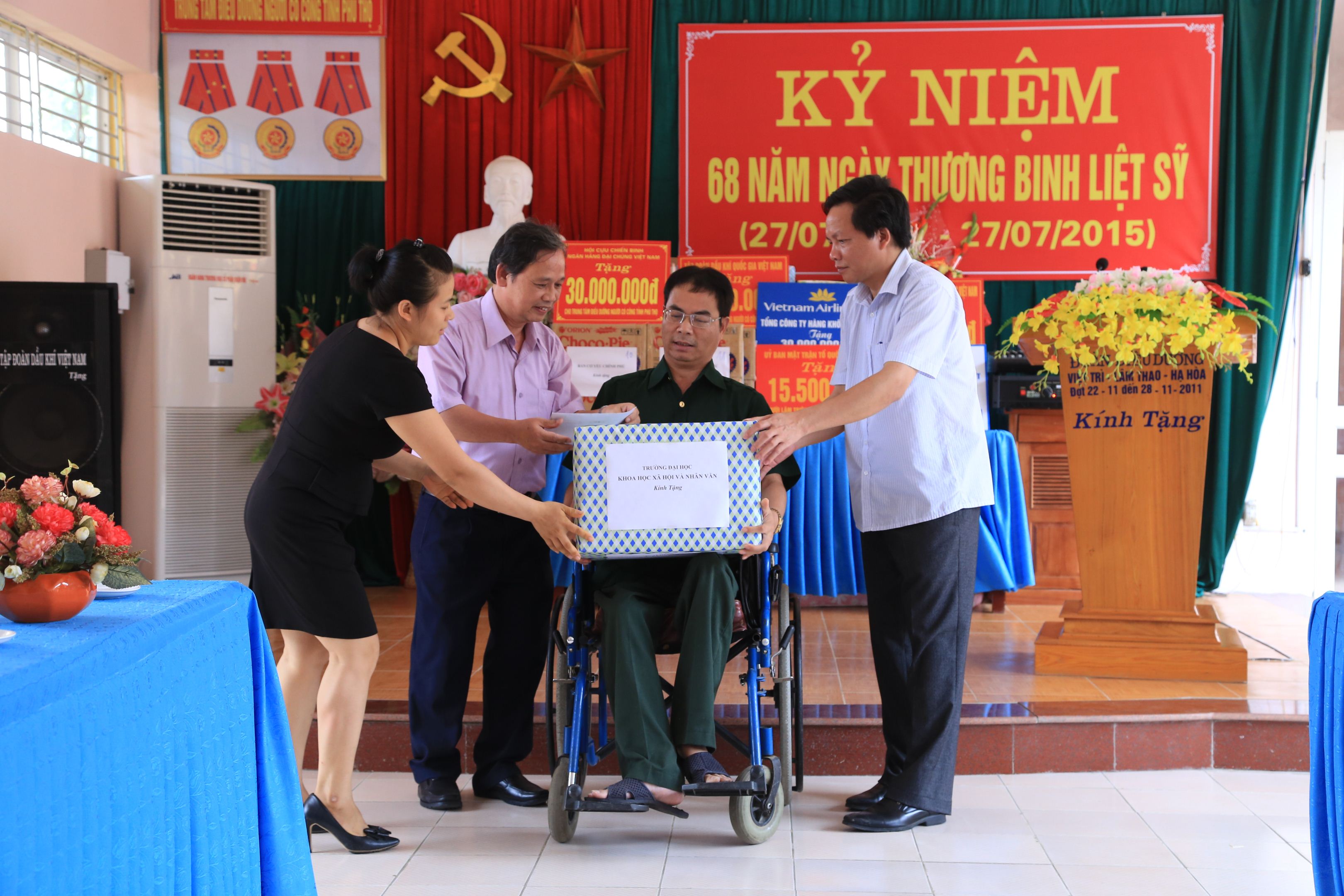 Trong chuyến đi thường niên trong dip 27/7 PGS.TS Đặng Xuân Kháng, Chủ tịch Công đoàn Trường Đại học KHXH và NV cho hay : “Năm nay Công đoàn, Cựu chiến binh trường thăm hỏi tặng quà và 15 triệu đồng tiền mặt cho Trung tâm điều dưỡng người có công ở tỉnh Phú Thọ và Trung tâm điều dưỡng người có công tại Thuận Thành, Bắc Ninh. Món quà tuy không lớn nhưng là tấm lòng tri ân, chúc sức khỏe các đồng chí thương binh nặng. Thầy cô giáo, cán bộ công nhân viên Nhà trường đối với các thương bệnh binh và mong vơi bớt nỗi đau, vượt lên khó khăn để sống và tiếp tục cống hiến.