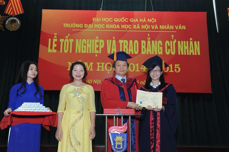 Hiệu trưởng trao bằng cử nhân cho Trần Ngọc Anh