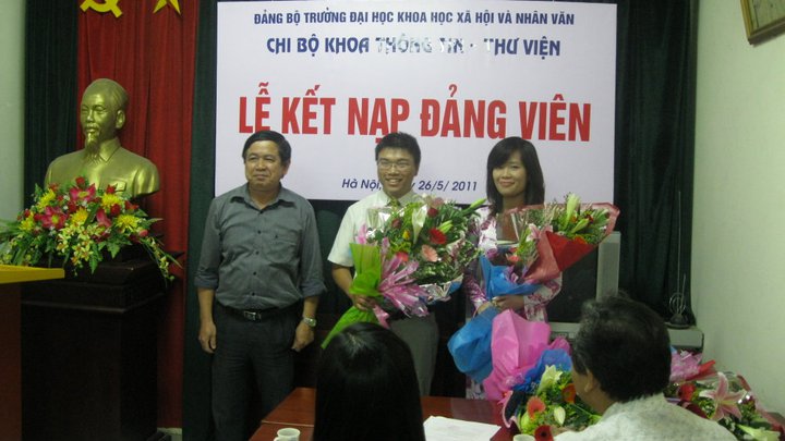 Lễ kết nạp đảng viên trẻ Nguyễn Chí Trung tại Chi bộ Khoa Thông tin - Thư viện năm 2011