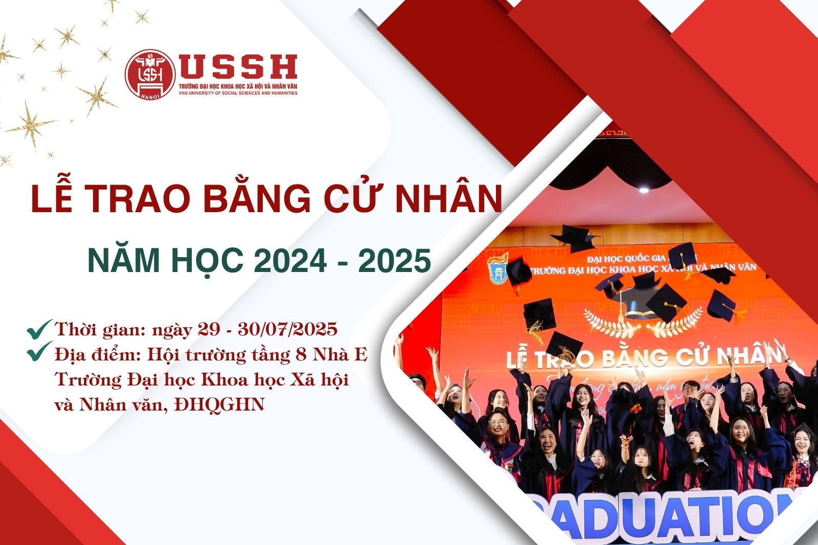 Lịch trao bằng cử nhân ngày 29 và 30 tháng 07 năm 2025 theo các khoa/viện