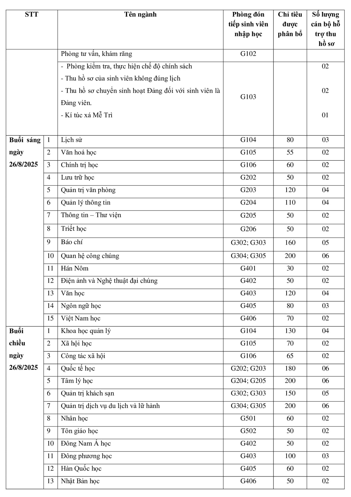 Ngày 26/8/2025 (Sáng từ 8h00 đến 11h30, chiều từ 13h30 đến 17h00)