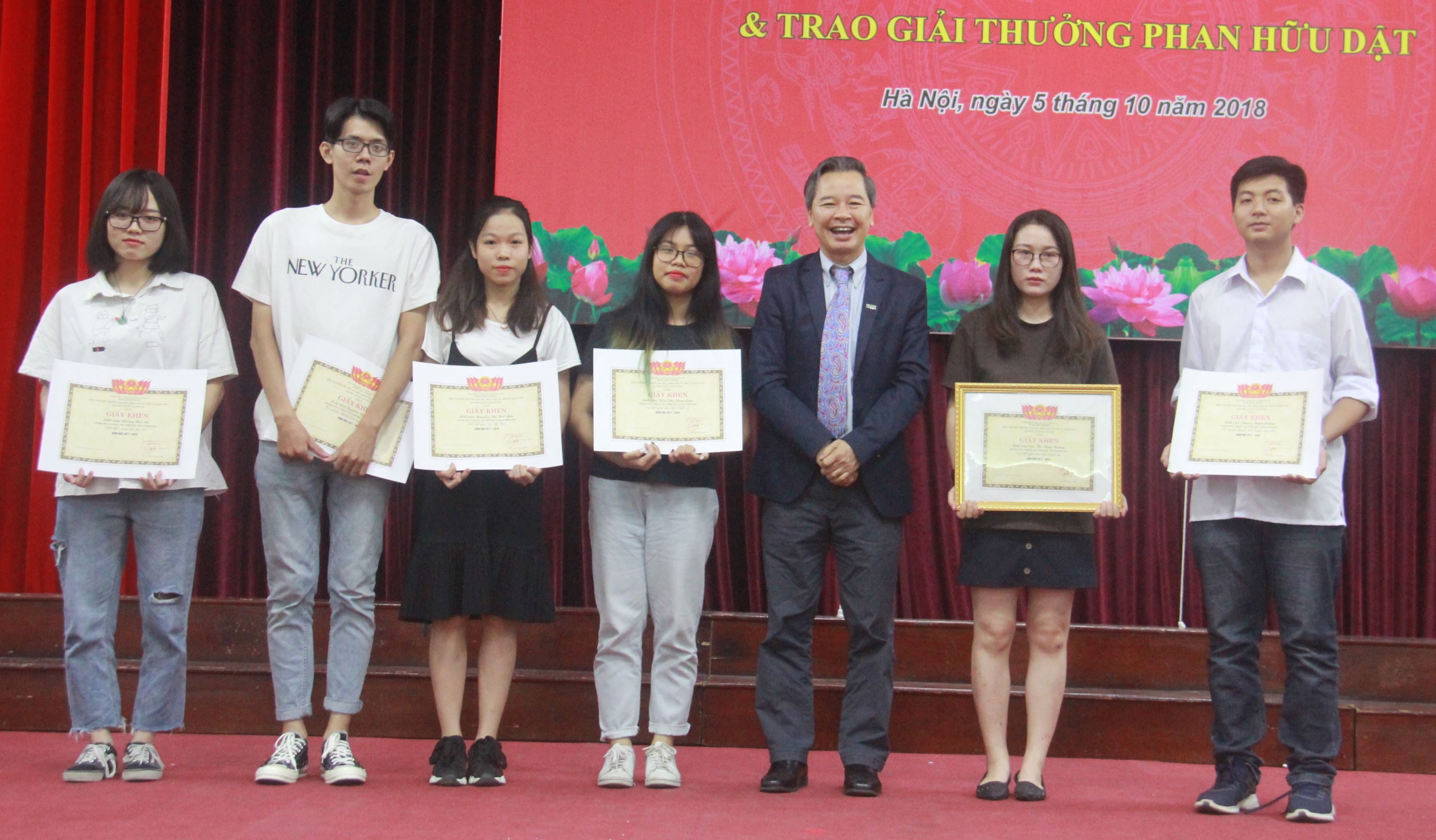 GS.TS Phạm Quang Minh (Hiệu trưởng Nhà trường) đã trao giải thưởng Pham Hữu Dật cho 10 bạn sinh viên có thành tích xuất sắc.