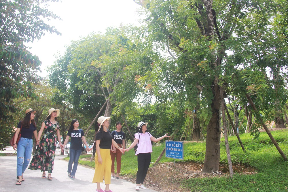 Nữ công đoàn viên Nhà trường bên hàng cây bồ kết ( khu di tích lịch sử Ngã ba Đồng Lộc)